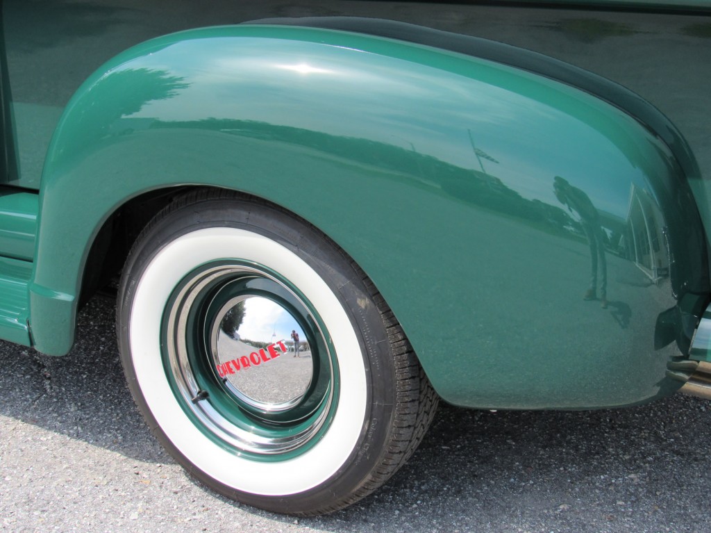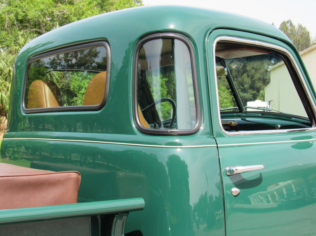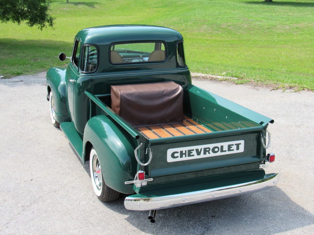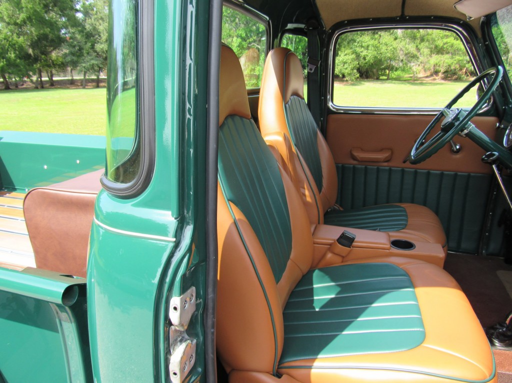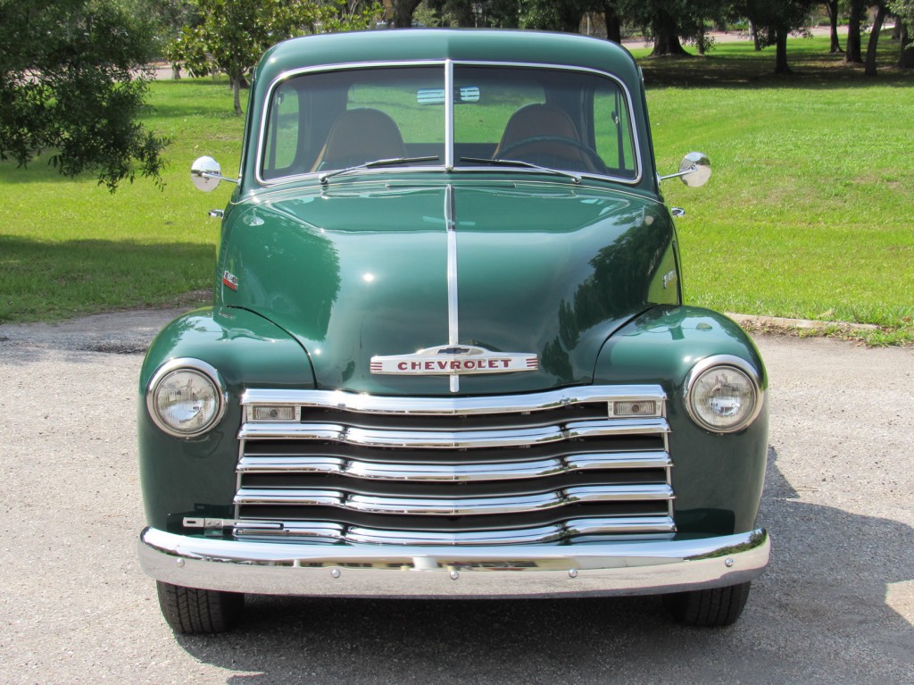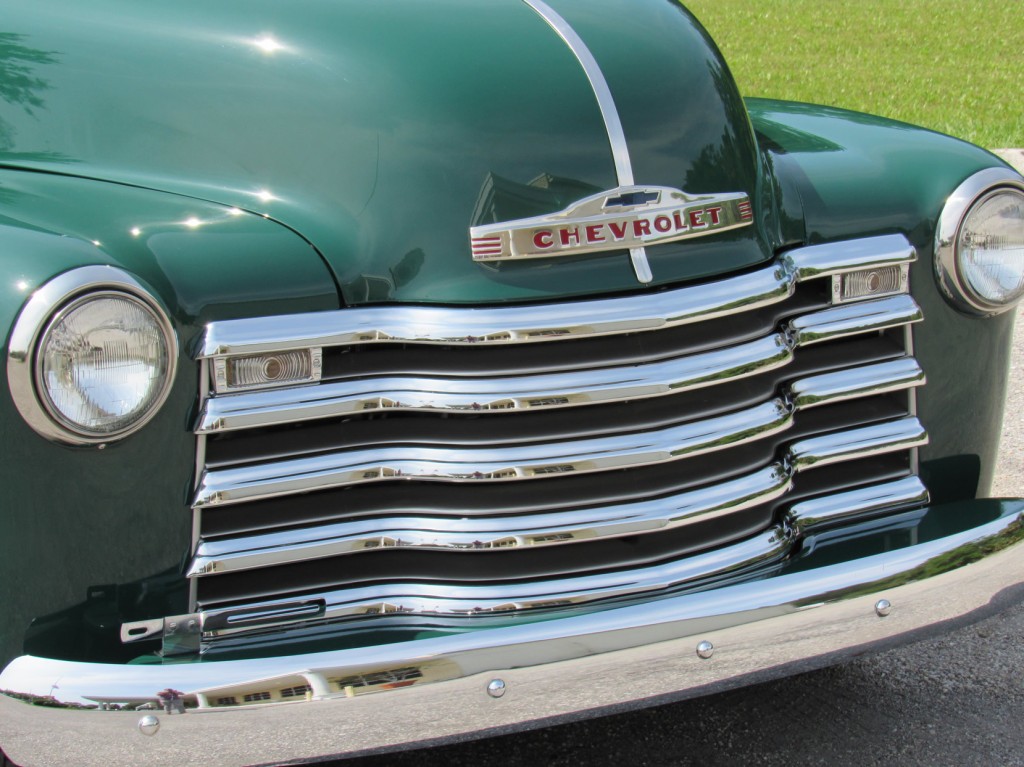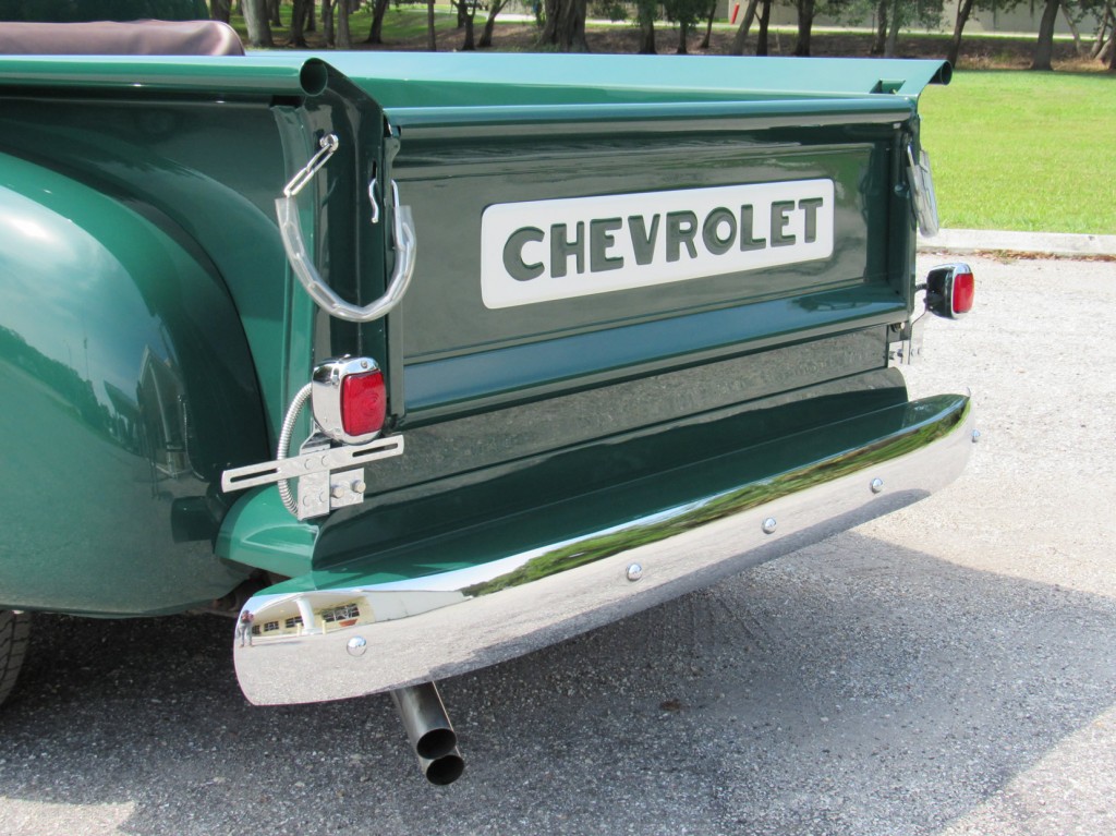 Chevrolet recognized that its trucks had to be more than workhorses, but also comfortable vehicles to drive. The automaker also recognized that the truck was no longer just a farm truck, but also driven as suburban transportation, with a greater number of women getting behind the wheel. Chevrolet marketed the truck with a new postwar approach. Chevy expanded the glass area of the 1947 models by 22 percent over the prewar designs. It also developed a new safety-glass technology. For the five-window Deluxe Cab models, Chevy marketed the feature as "Nu-Vue Rear-Corner Windows." These rear quarter-panel windows curved with the contour of the cab to eliminate the blind spot. Stylists finished all the windows with stainless steel trim.This 1948 5-window truck is a high-quality, frame-0ff restoration with upgrades in power and comfort and has been lowered 2”. It is powered by the 261ci 6-cylinder engine with a Fenton 2-carb intake and a Fenton split exhaust manifold plus a Saginaw 4-speed transmission. This truck also features power front disc brakes. The dark green paint with a small cream pin stripe around the belt line makes for an outstanding look. Moving to the bed you will find a highly polished mahogany wood floor with polished stainless divider strips. The bed also features a super nice leather storage trunk with a cover. The interior is breath taking with high quality green and dark tan high back bucket seats from a Ford Expedition with a console, cupholder and fold down inner arm rests. Interior features also includes professionally installed modern 134a air conditioning and heater unit, radio and 3-point seat belts. This great example has been converted to a 12-volt electrical system. It comes with extensive photos of the restoration and has just 2,500 miles on it since restoration was completed in 2015. Jump in this truck and go have hours of driving fun.