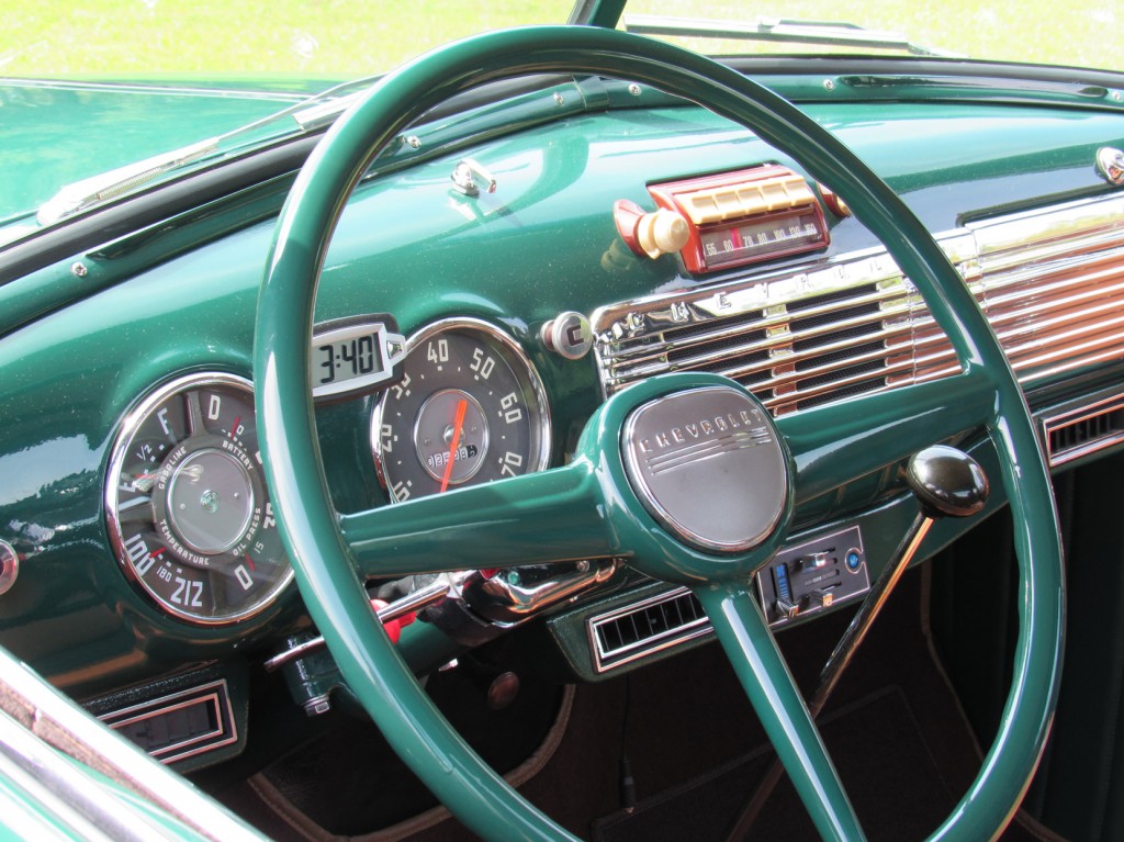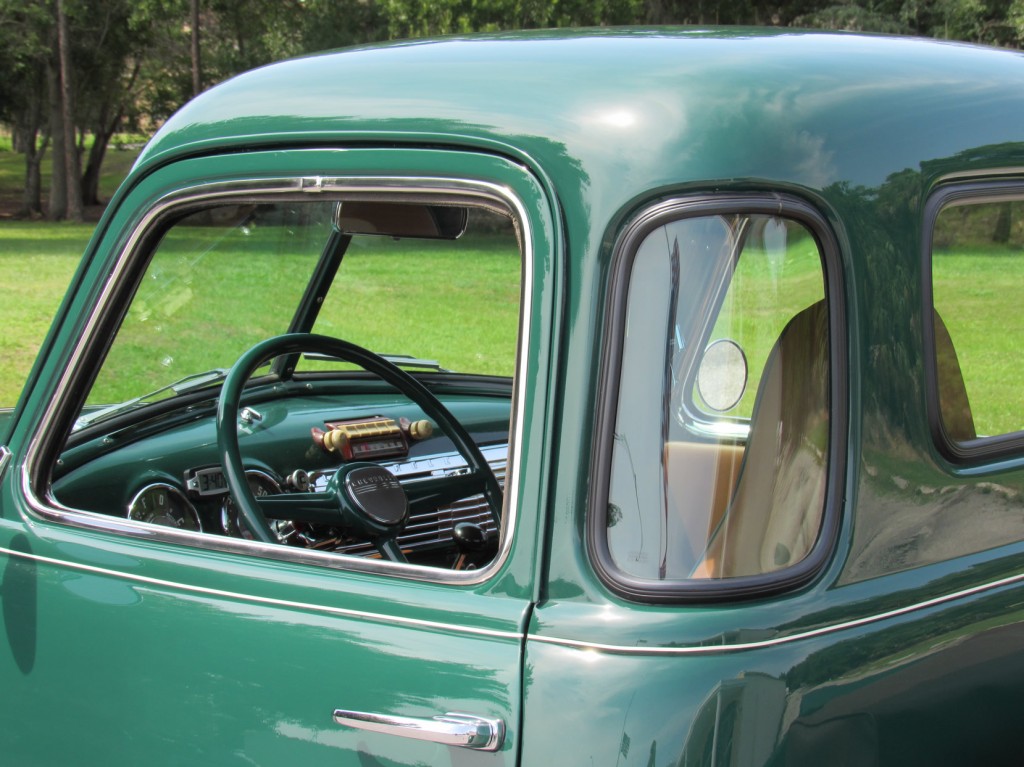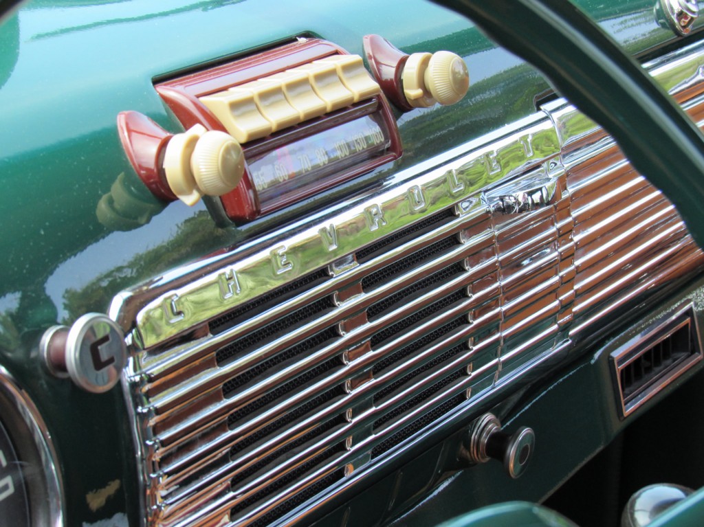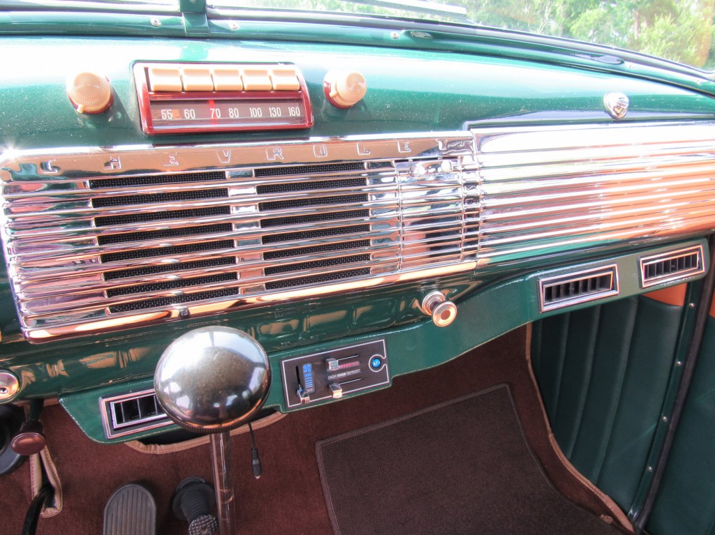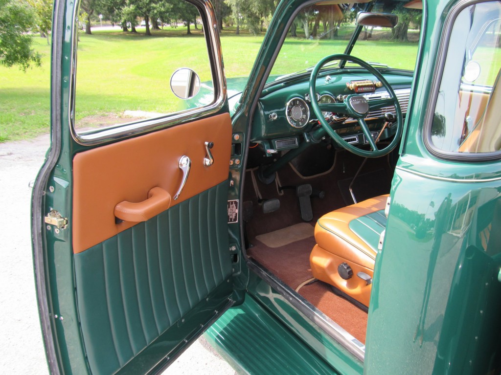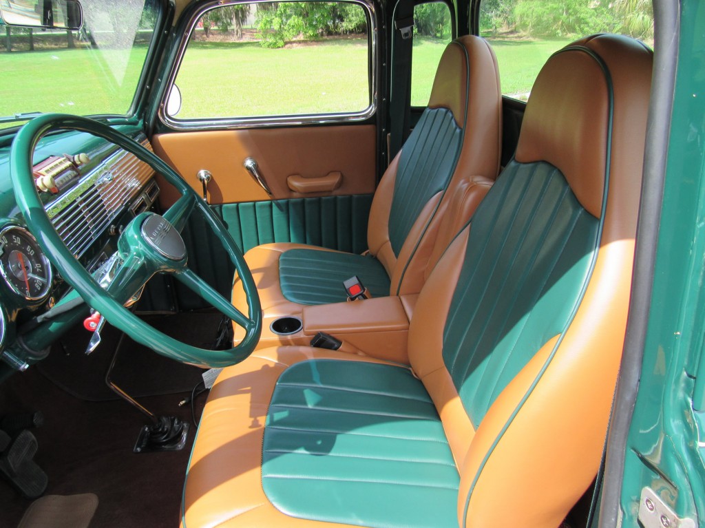Chevrolet recognized that its trucks had to be more than workhorses, but also comfortable vehicles to drive. The automaker also recognized that the truck was no longer just a farm truck, but also driven as suburban transportation, with a greater number of women getting behind the wheel. Chevrolet marketed the truck with a new postwar approach. Chevy expanded the glass area of the 1947 models by 22 percent over the prewar designs. It also developed a new safety-glass technology. For the five-window Deluxe Cab models, Chevy marketed the feature as "Nu-Vue Rear-Corner Windows." These rear quarter-panel windows curved with the contour of the cab to eliminate the blind spot. Stylists finished all the windows with stainless steel trim.This 1948 5-window truck is a high-quality, frame-0ff restoration with upgrades in power and comfort and has been lowered 2”. It is powered by the 261ci 6-cylinder engine with a Fenton 2-carb intake and a Fenton split exhaust manifold plus a Saginaw 4-speed transmission. This truck also features power front disc brakes. The dark green paint with a small cream pin stripe around the belt line makes for an outstanding look. Moving to the bed you will find a highly polished mahogany wood floor with polished stainless divider strips. The bed also features a super nice leather storage trunk with a cover. The interior is breath taking with high quality green and dark tan high back bucket seats from a Ford Expedition with a console, cupholder and fold down inner arm rests. Interior features also includes professionally installed modern 134a air conditioning and heater unit, radio and 3-point seat belts. This great example has been converted to a 12-volt electrical system. It comes with extensive photos of the restoration and has just 2,500 miles on it since restoration was completed in 2015. Jump in this truck and go have hours of driving fun.