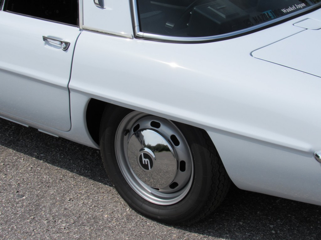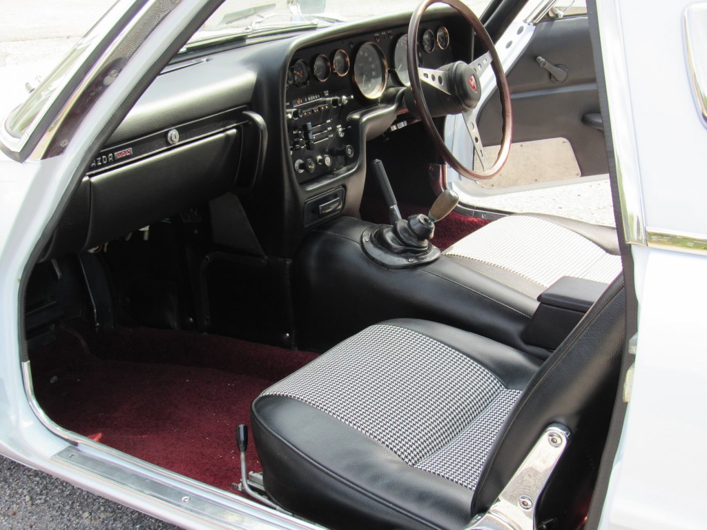 In 1966 Mazda launched its first rotary, the Cosmo L10A, which went into production the following year. Mazda’s flagship model, the Cosmo, was powered by a twin-rotor engine displacing 982cc and producing 110bhp which was enough to endow the pretty two-seater coupé with a top speed of 110mph. Production was limited, and when the Cosmo was phased out in 1972 only 1,519 had been made, of which 343 were the Series I L10A and 1,176 were the Series II L10B version. It is unknown how many 110S Export models were built. In the world of collectible Japanese cars, the Mazda Cosmo ranks in the top tier, alongside its high-performance Toyota and Nissan competitors, the 2000GT and the Skyline GT-R.