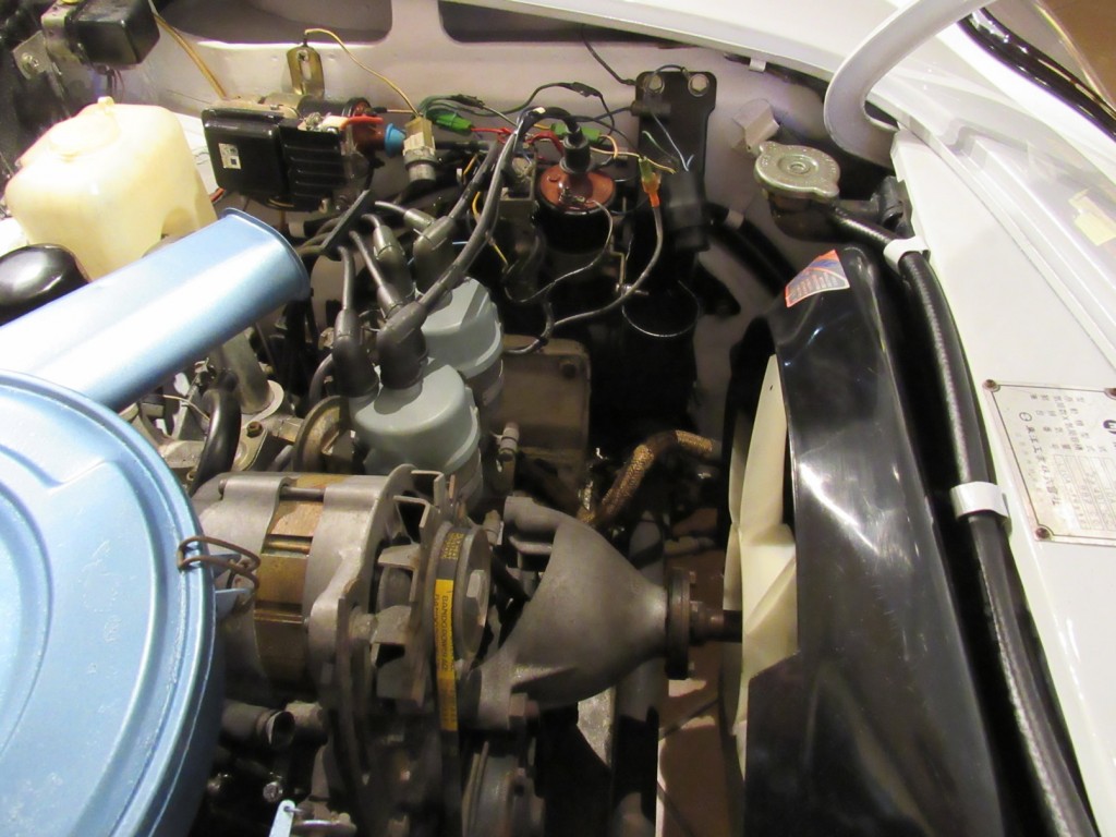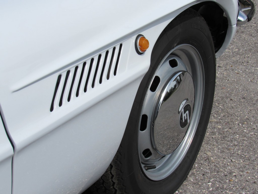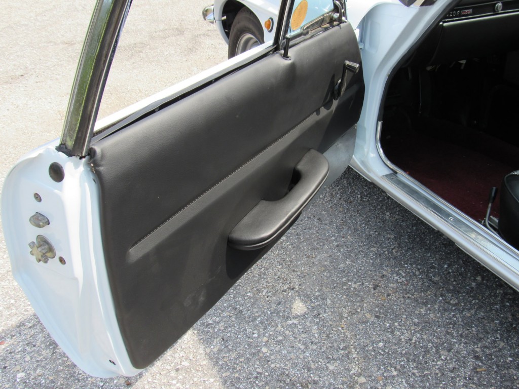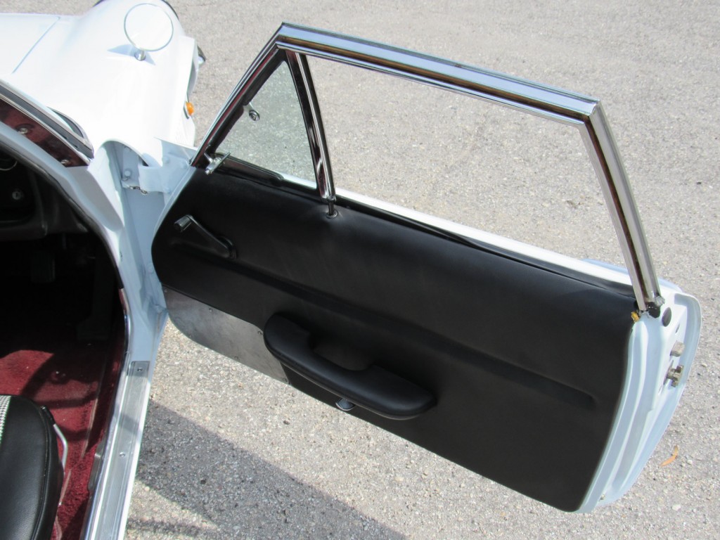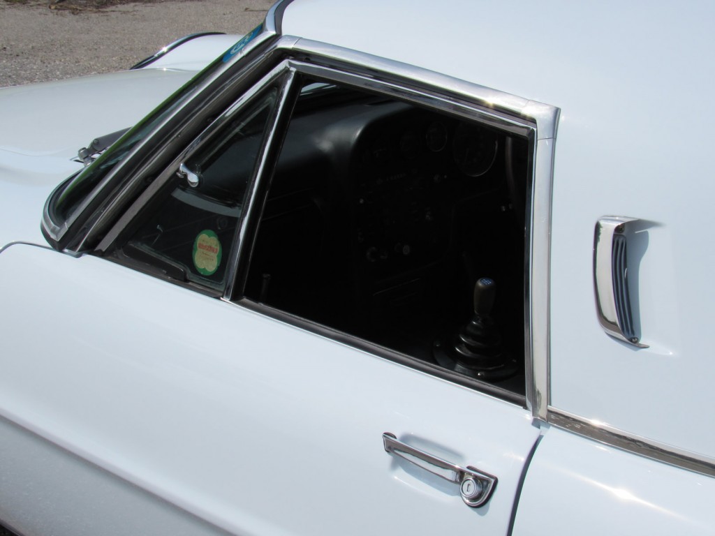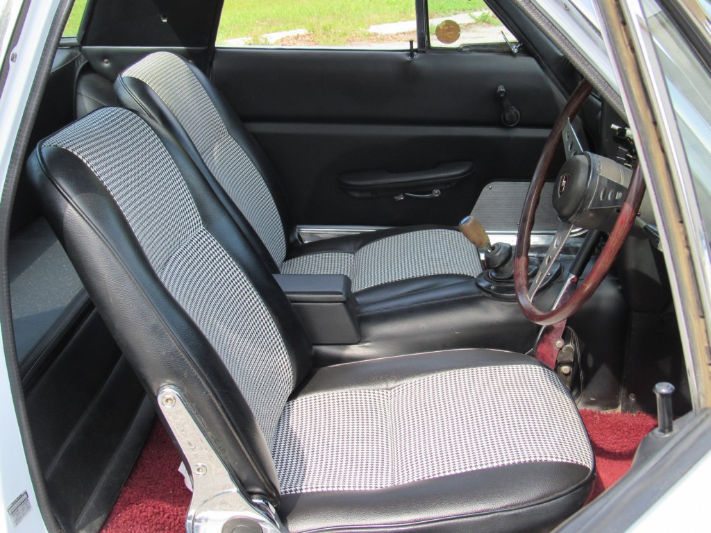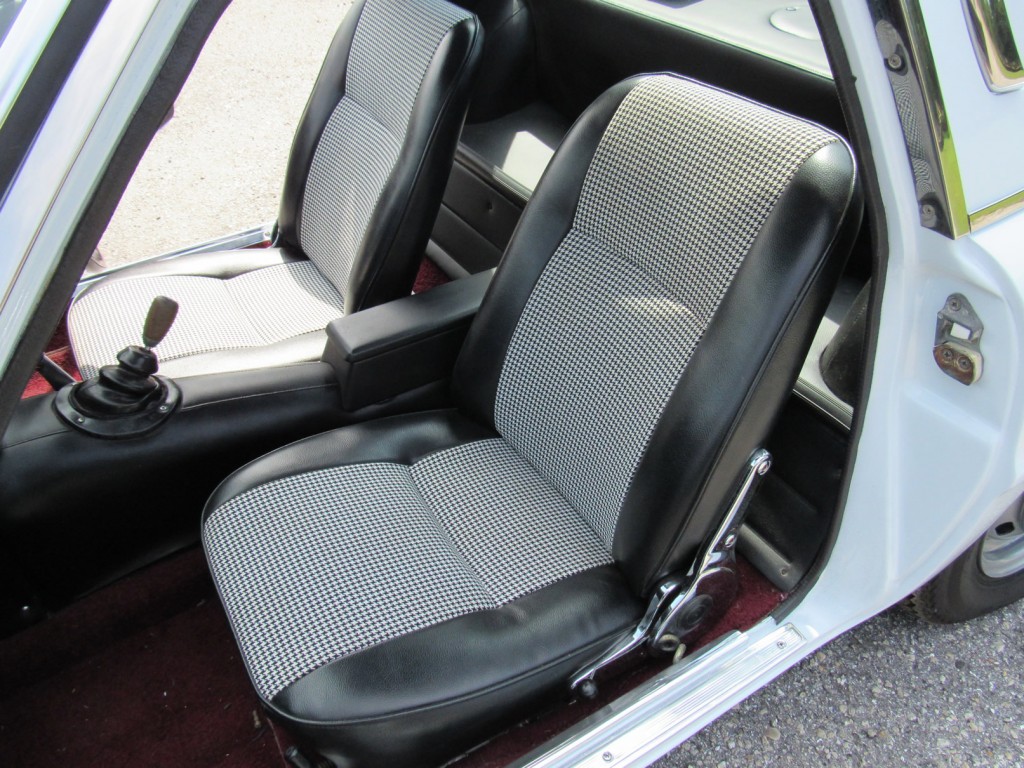 This example is in great condition. Runs and drives nicely. Recently completed bare metal repaint in correct Swan White over newly reupholstered seats with proper houndstooth cloth pattern and original maroon carpets. New wheels and tires, nicely detailed motor compartment with proper decals. Exterior chrome was also sent out and re-chromed to a high quality. The odometer currently shows 81,000 KM (51,000 miles) with original Clarion radio and period Pioneer speakers in rear tray.