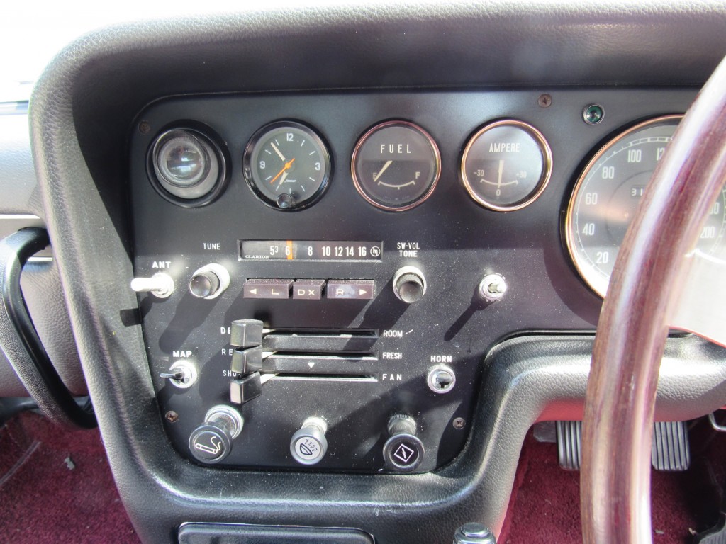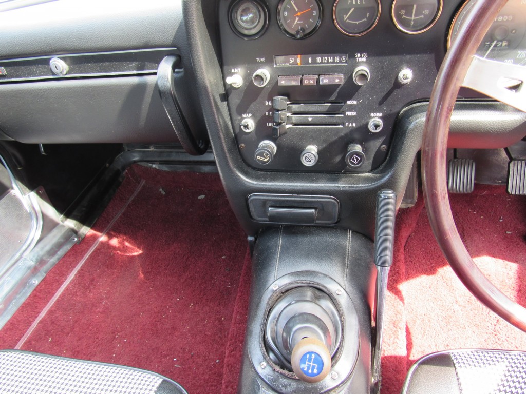 Although the number of previous owners is not known, the previous owner, an avid JDM collector, purchased this 110S from one of the largest rotary-engined car collections in Japan in 2014. He imported it and titled it and added it to his impressive collection. This wonderful example has only ever been regularly maintained and is in predominantly original condition. In Japan and today it's been stored in a climate controlled environment. Most websites identify just two versions of the Mazda Cosmo, L10A Series I short wheel base and L10B Series II long wheel base, however, there was in fact a 3rd “interim” version. After beginning production of the L10B, Mazda recognized a growing interest from outside their homeland. Rather than putting stress on their already limited production capabilities, they took the remaining stock of L10A engines and bodies and rebadged them as “110S Export” models. These are very easily identified by the “Made in Japan” stamped into the hood latch and the large open “guppy-mouth” air dam below the front bumper, which was a modification made for the L10B longer wheel based body. Though purchased from a Japanese collection, this car on offer is easily identifiable as a legitimate 110S Export model. The official export certificate, states that this car was first registered in Japan in 1970 and is simply one example which never left the country.