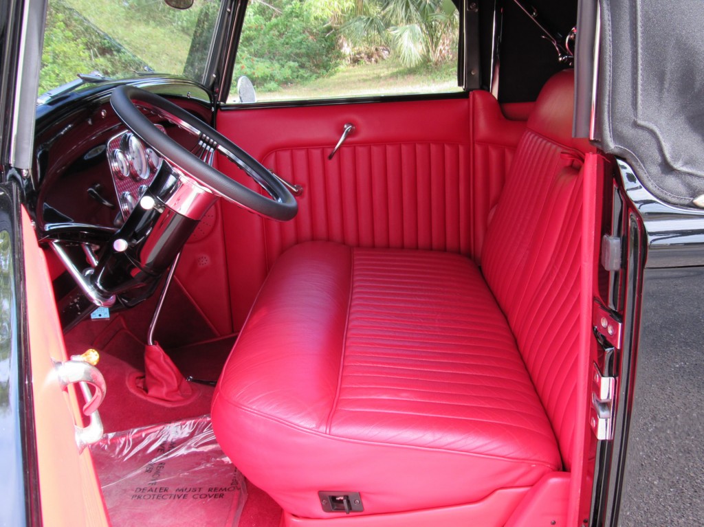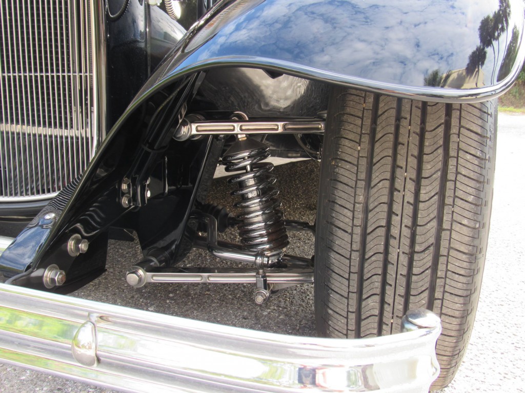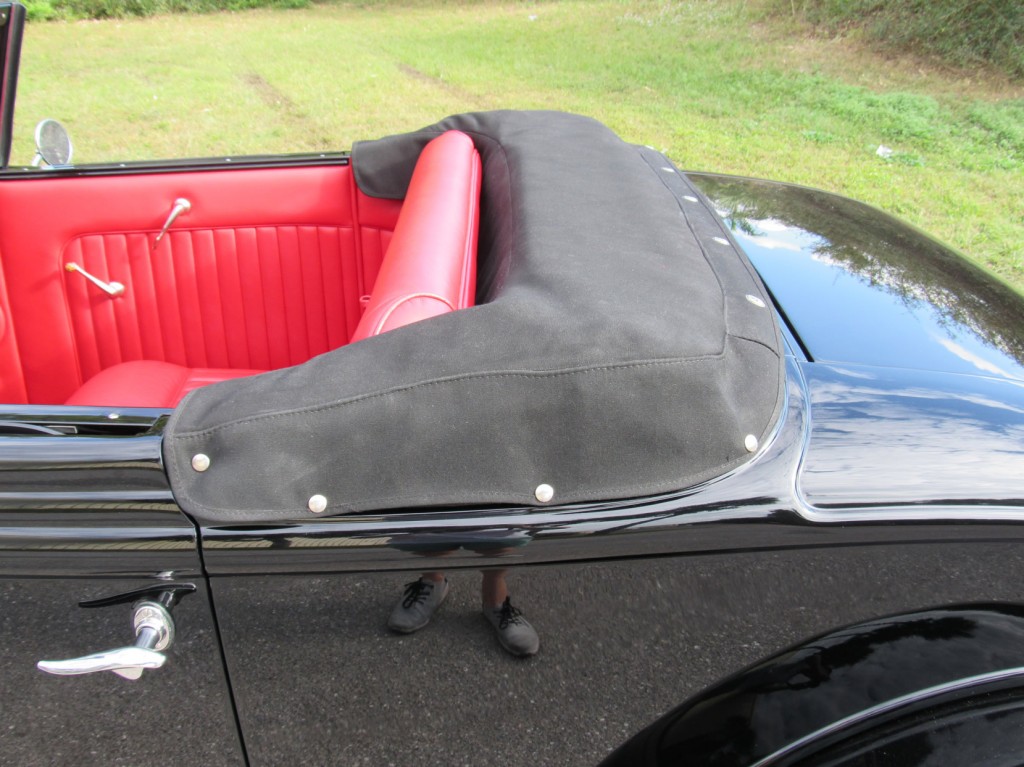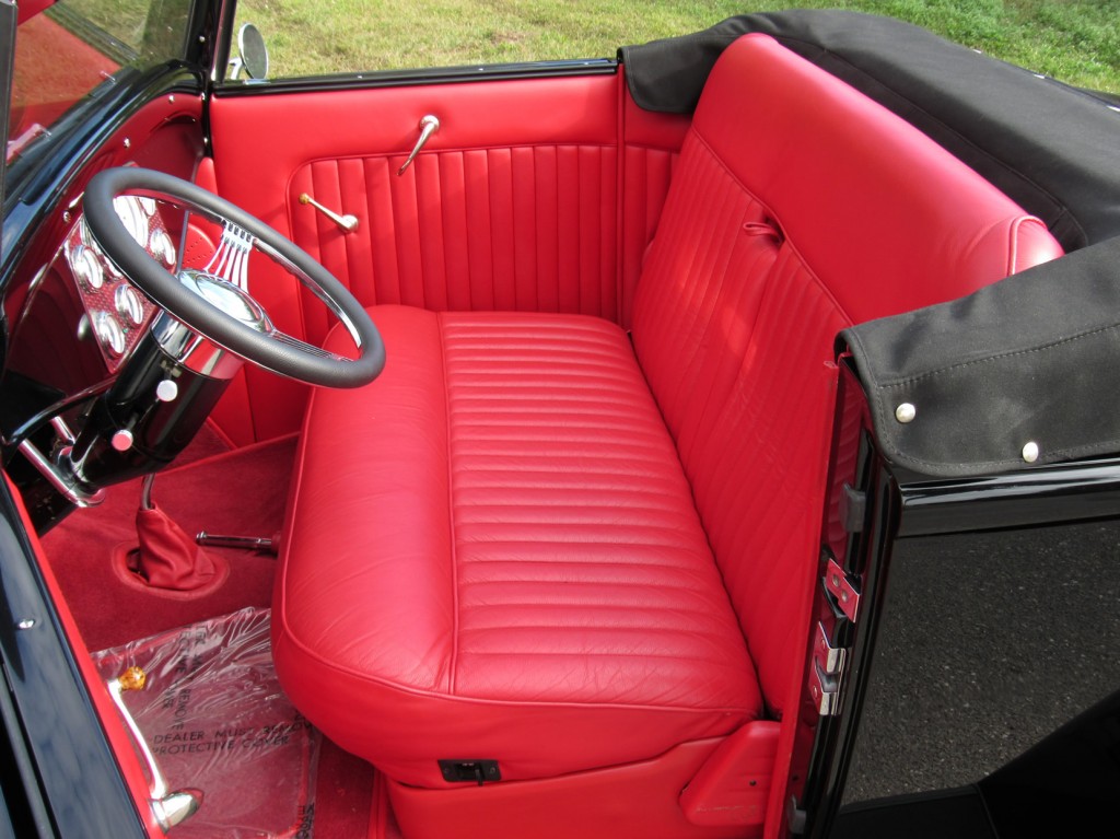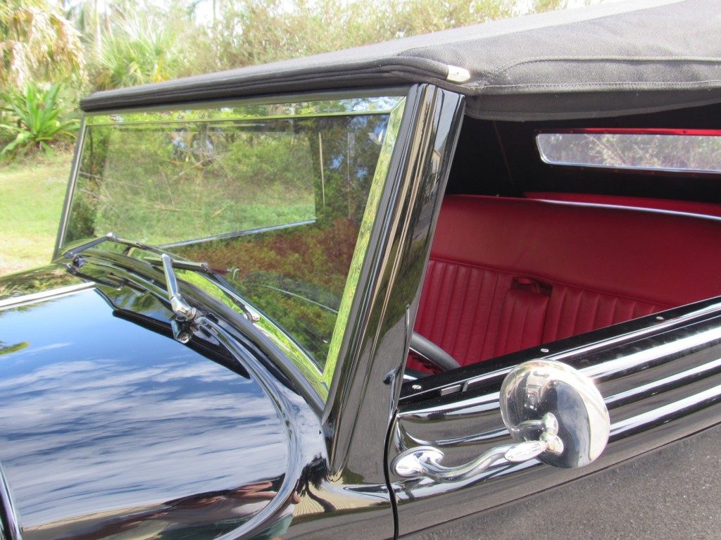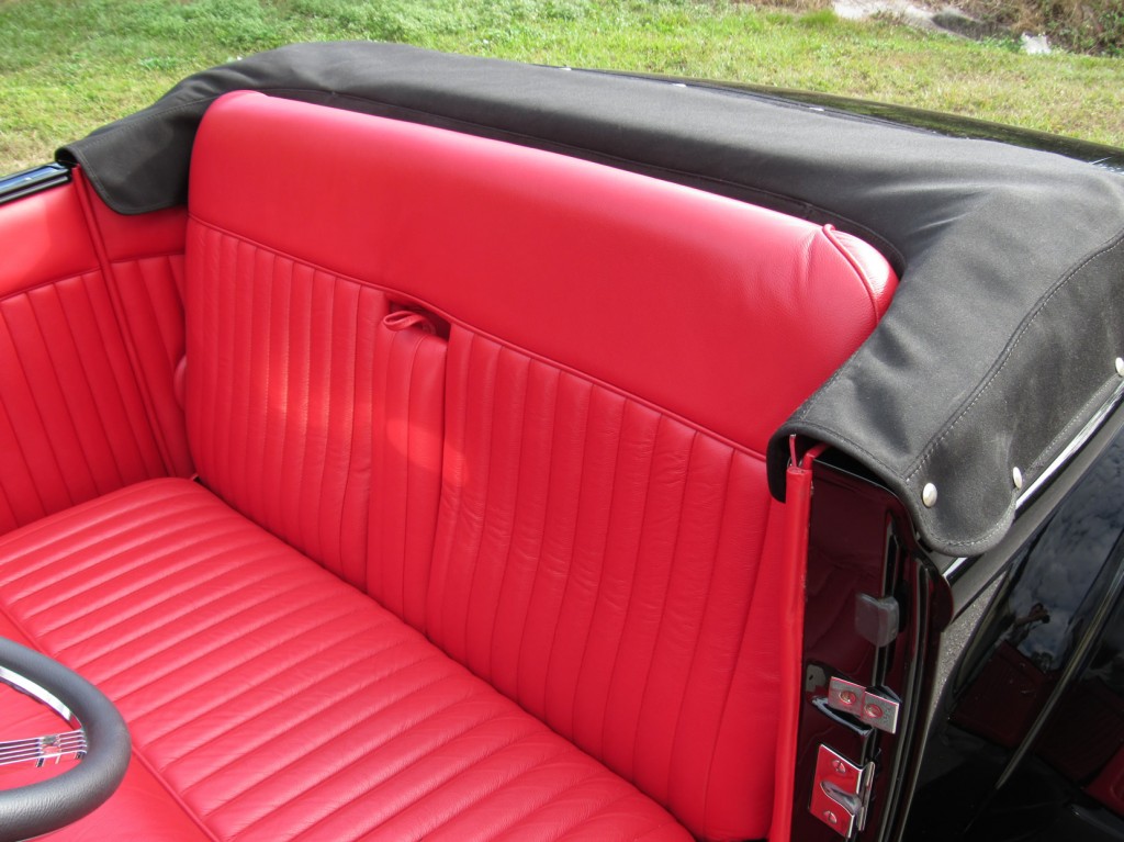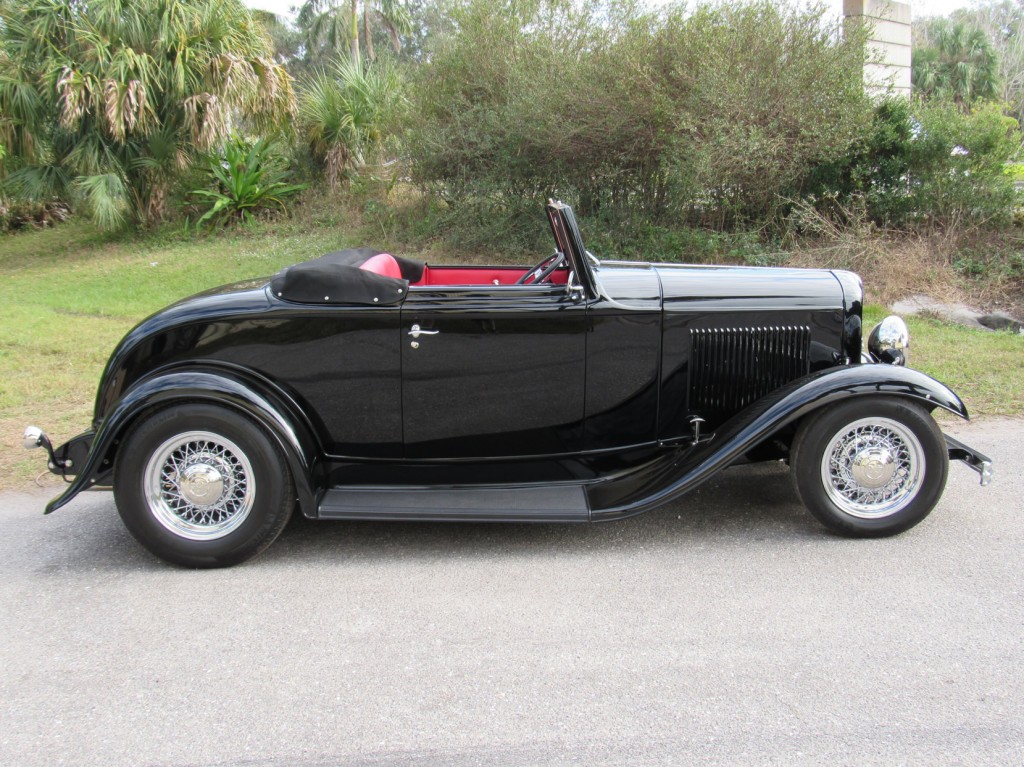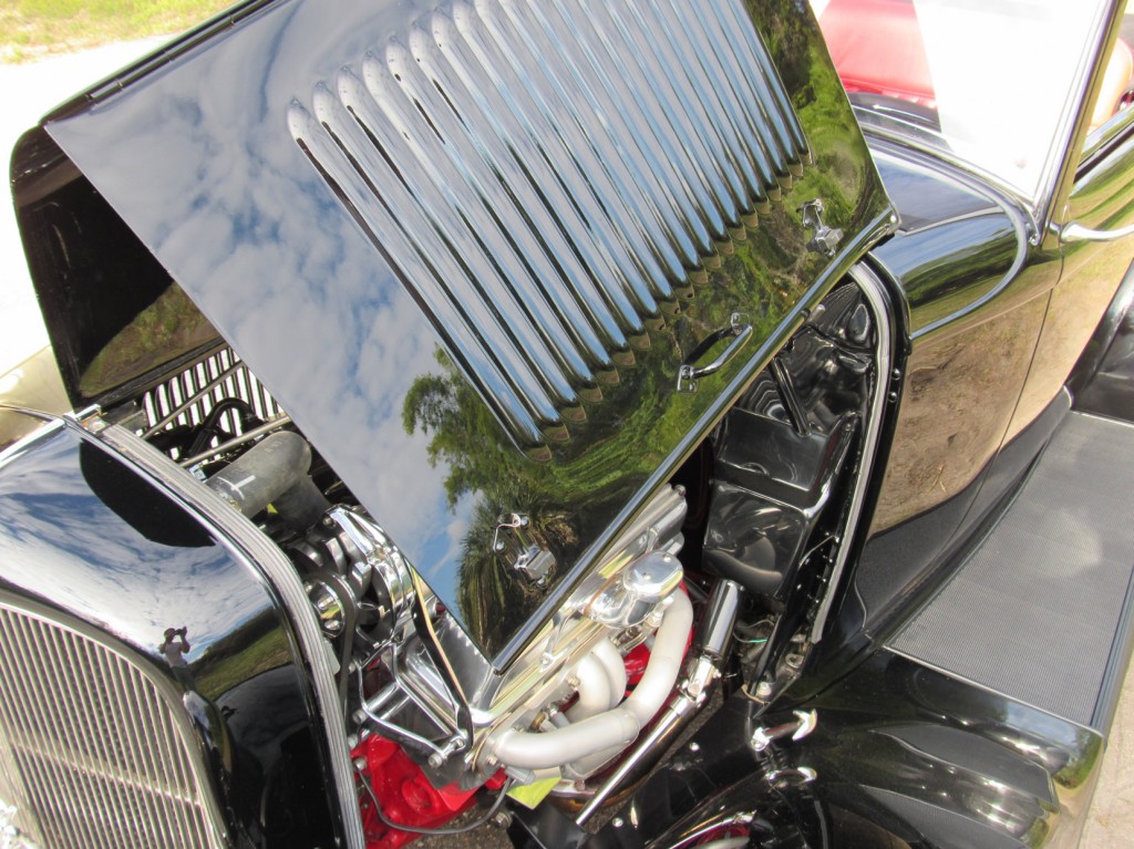 1932 Ford Cabriolet. Finished in beautiful Ebony Black paint accented by a gorgeous Red leather interior. Powered by a 383CI 400HP V8 engine mated to a Turbo 350 automatic transmission. This amazing Hot Rod features an original Henry Ford Steel Cabriolet Body sitting on a custom Kugel Chassis with polished independent front coilover suspension, polished Jaguar style independent rear suspension, 4 wheel Wilwood Disc Brakes, Stainless Steel Exhaust, transmission cooler, leather seating surfaces, CD player, Ice Cold Air Conditioning, Lokar shifter, Classic Instruments gauges, tilt steering column,Tru Spoke wire wheels wrapped in Michelin Tires and much more. This is truly a Top Shelf build with over $165,000 of receipts for parts and pieces alone.