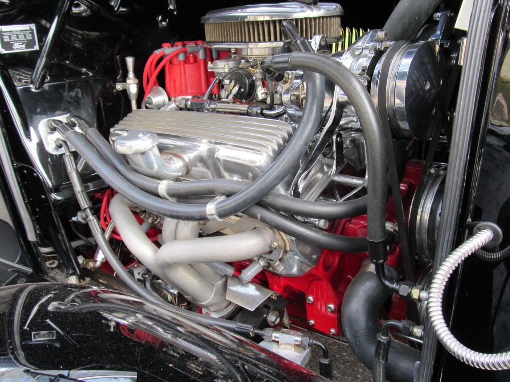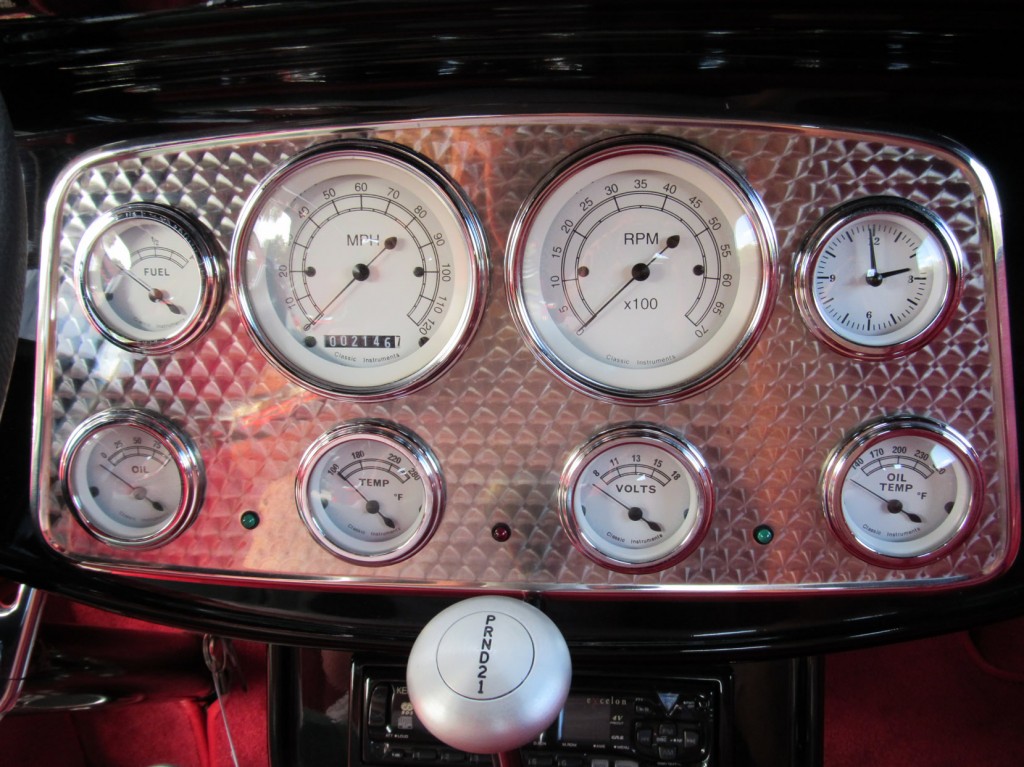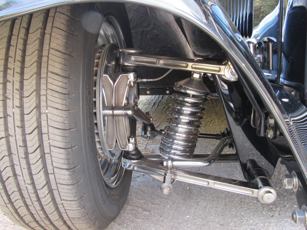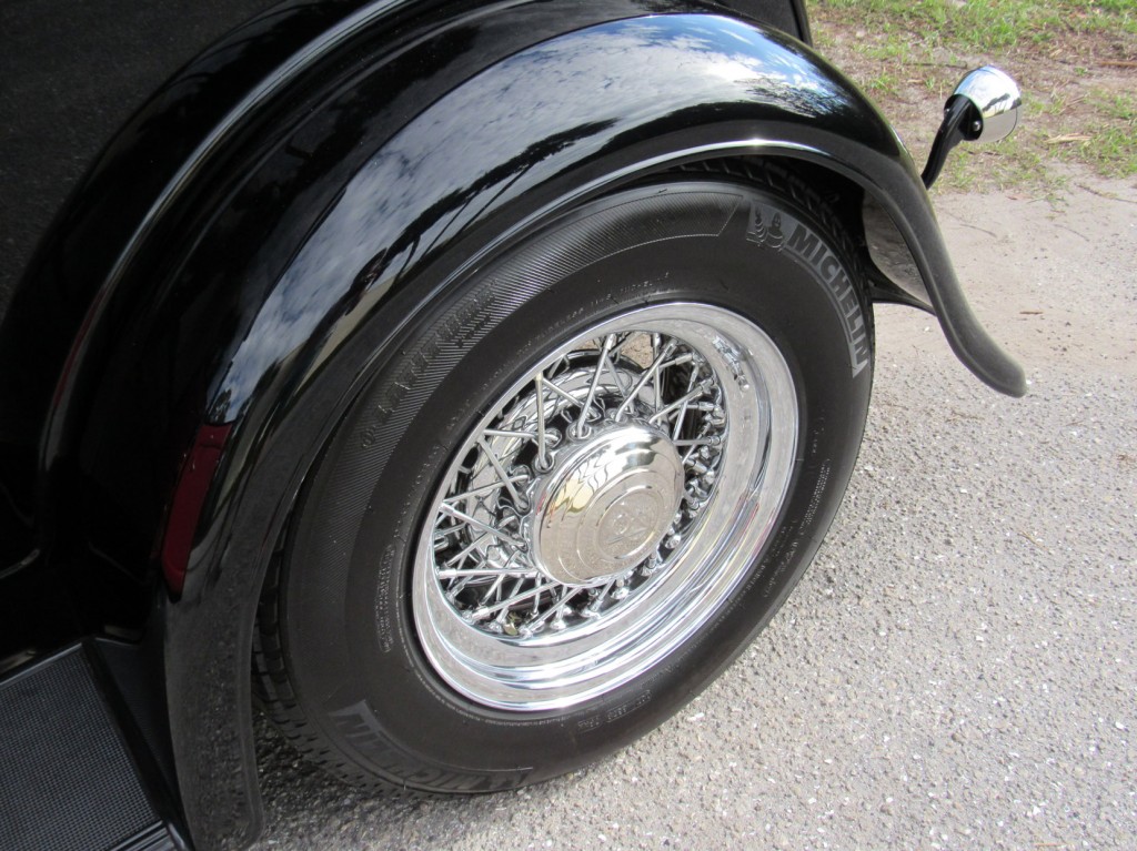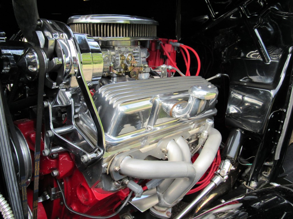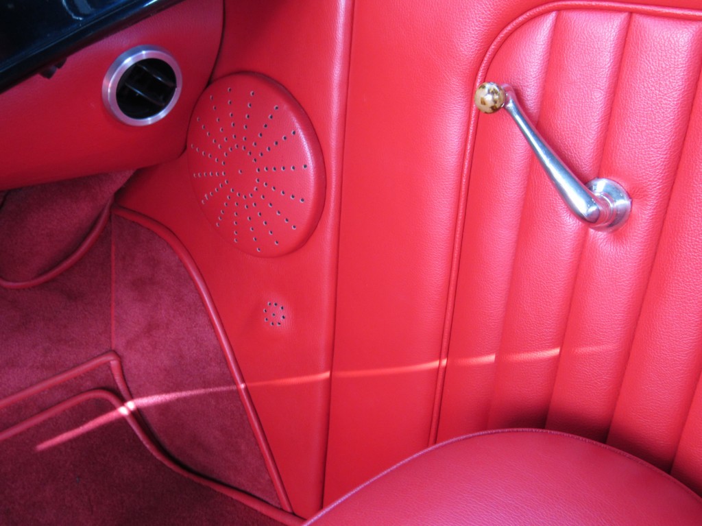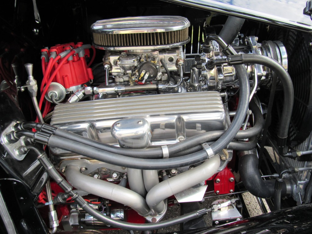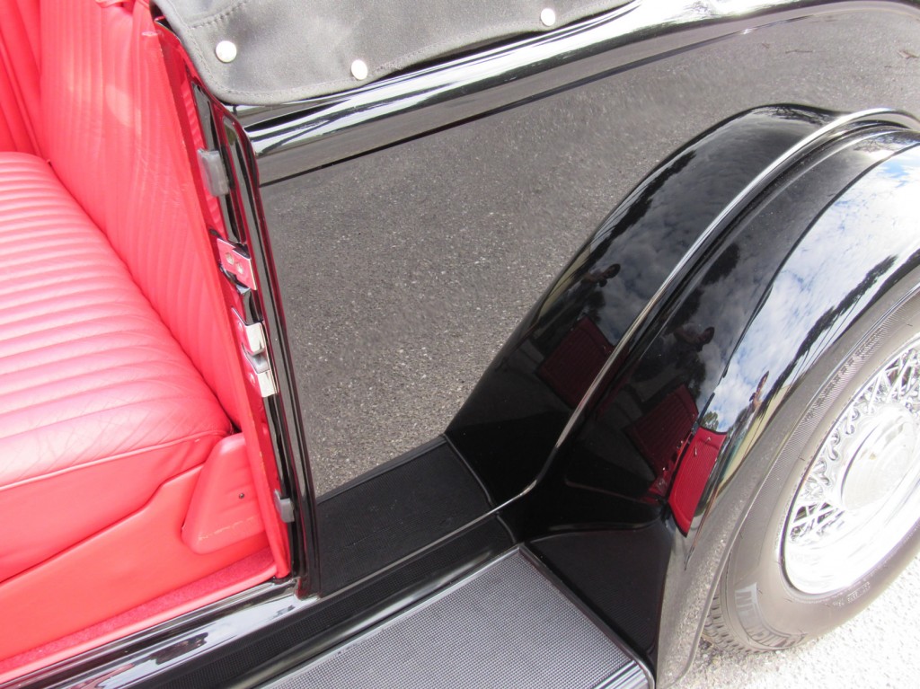1932 Ford Cabriolet. Finished in beautiful Ebony Black paint accented by a gorgeous Red leather interior. Powered by a 383CI 400HP V8 engine mated to a Turbo 350 automatic transmission. This amazing Hot Rod features an original Henry Ford Steel Cabriolet Body sitting on a custom Kugel Chassis with polished independent front coilover suspension, polished Jaguar style independent rear suspension, 4 wheel Wilwood Disc Brakes, Stainless Steel Exhaust, transmission cooler, leather seating surfaces, CD player, Ice Cold Air Conditioning, Lokar shifter, Classic Instruments gauges, tilt steering column,Tru Spoke wire wheels wrapped in Michelin Tires and much more. This is truly a Top Shelf build with over $165,000 of receipts for parts and pieces alone.