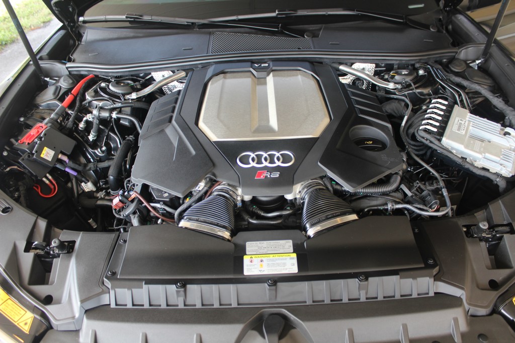 At its heart is a 591-hp twin-turbo V-8 that produces raucous noises and pairs with a paddle-shifted Eight-speed Tiptronic® transmission as well as a dynamic version of Audi's Quattro all-wheel-drive system