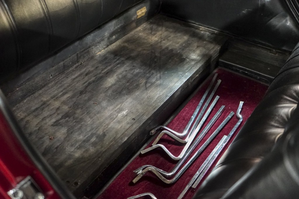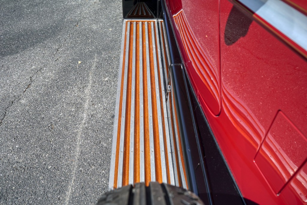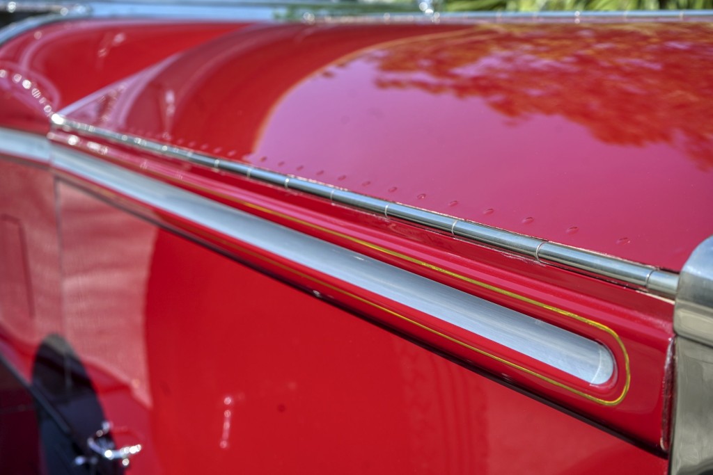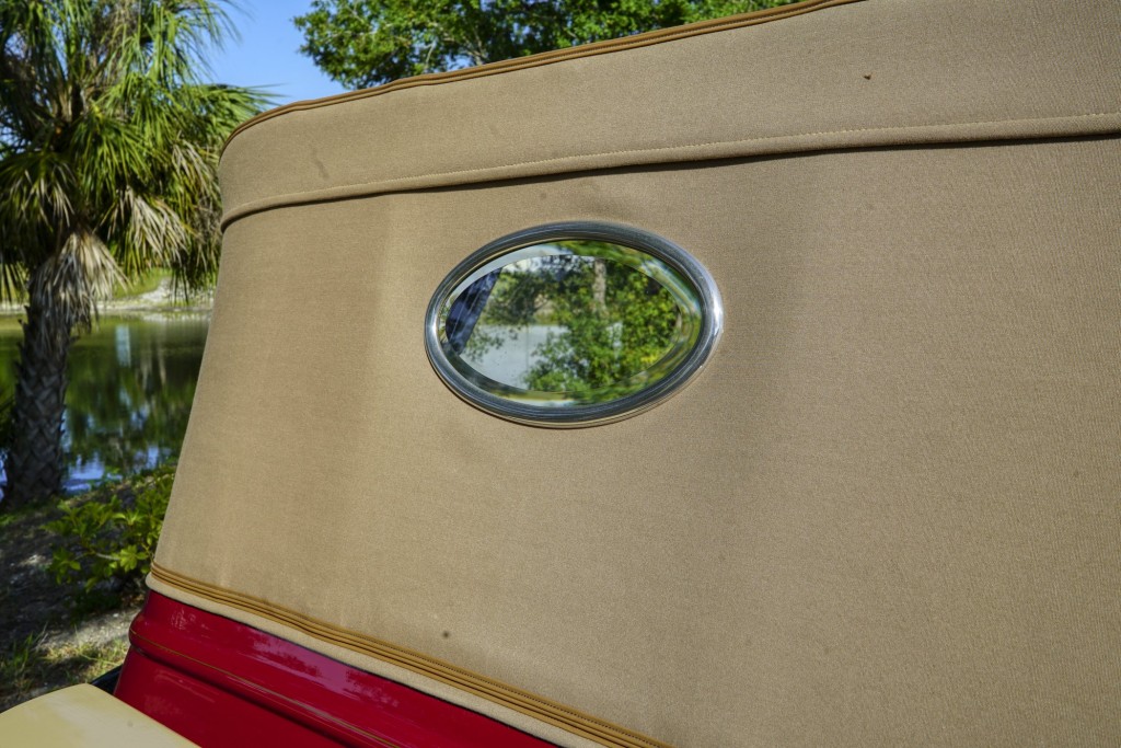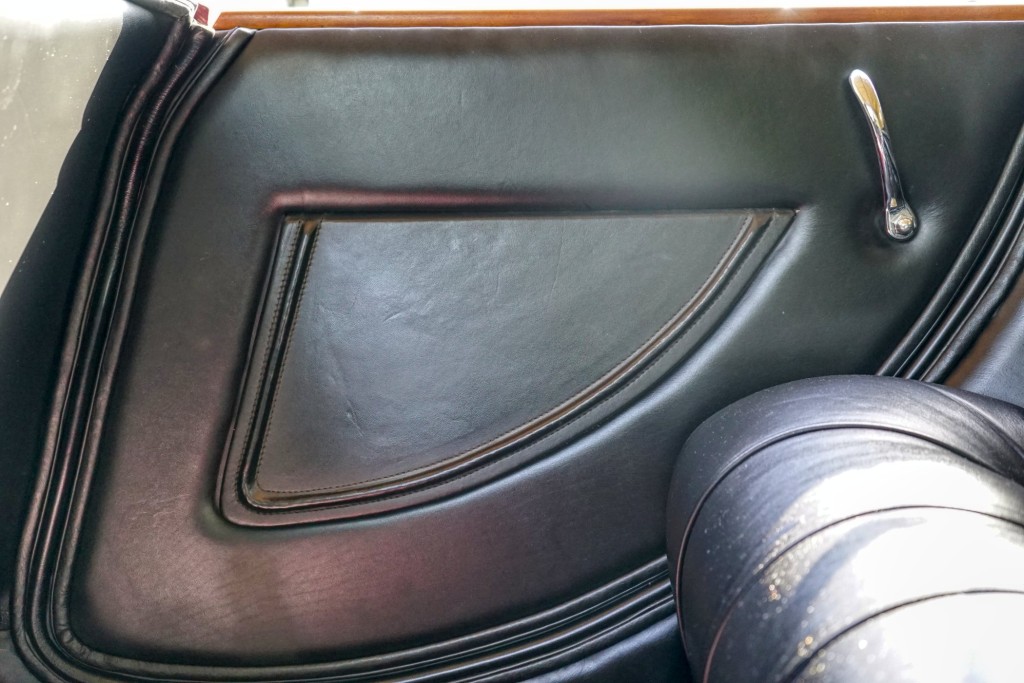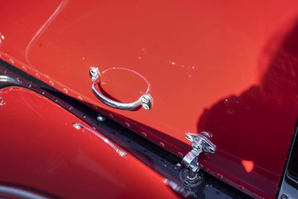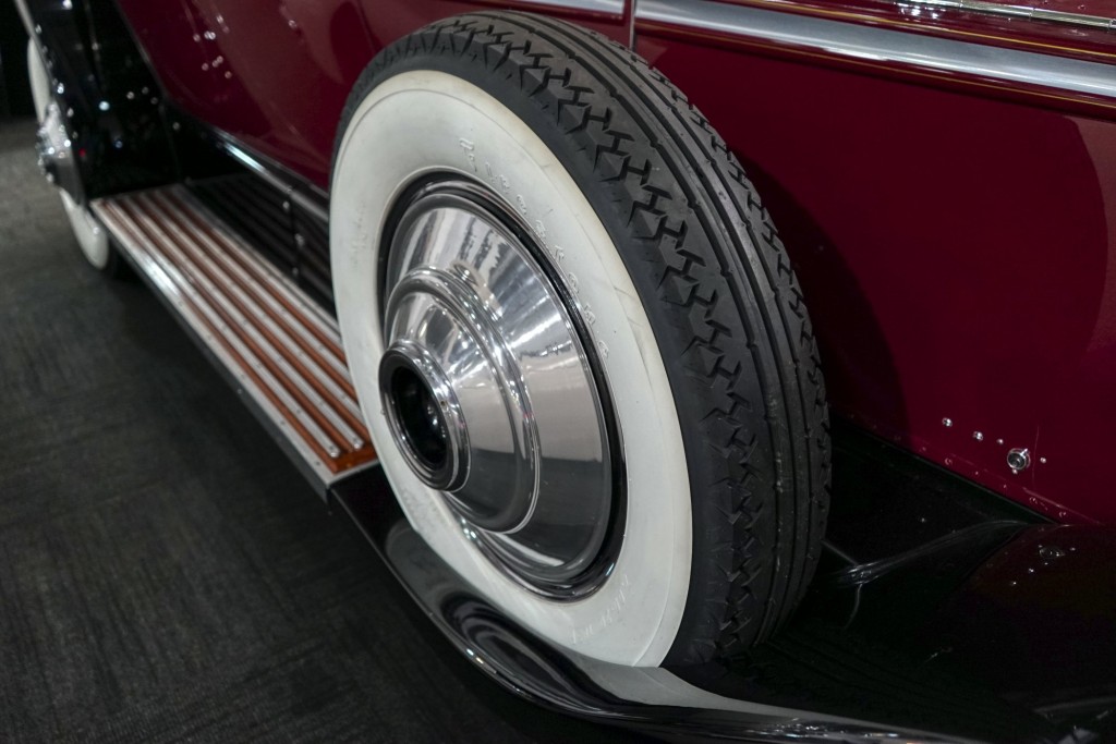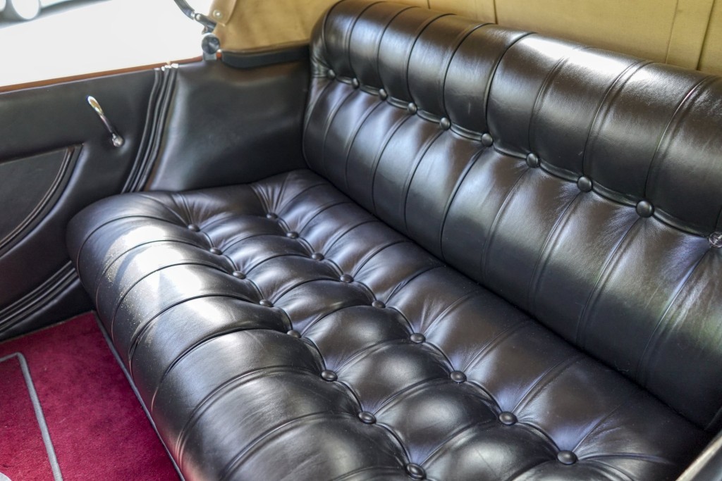 This Phantom I was delivered new to Hollywood actor Lewis Stone on Christmas Eve 1927, and it first wore an enclosed seven-passenger Arundel design by Brewster. After years of faithful service, in the early 1970s, the low-mileage, excellent-condition chassis was re-bodied in Australia, by Peter Lamm’s team of skilled coachbuilders, as an exact reproduction of another Brewster body, the Derby, which was a fully collapsible, four-passenger sporting body. From its sloping windshield, beautifully styled curved opening doors and full walnut capped interior surround to its distinctive dual side-mounted spares and its elegant oval rear window that culminates in its elegant rear quarters, this car exudes sporting yet tasteful elegance. It is now finished in bright red with a correct tan cloth top, matching full front and rear cockpit covers, complete window side curtain weather equipment with cloth colored rear beige finished wood trunk, and owners handbook, wheel and disc tools.