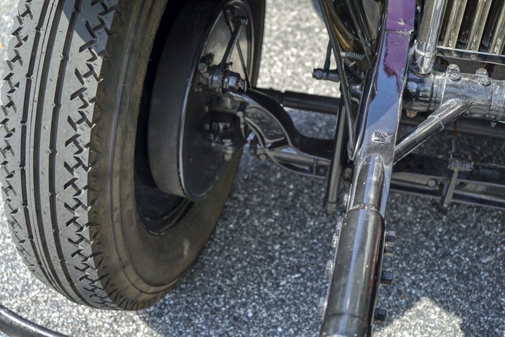 113–120 bhp, 7,688 cc OHV inline six-cylinder engine with single two-jet carburetor, with starting carburetor and vacuum fuel feed, three-speed standard transmission, semi-elliptic front suspension, cantilever rear-spring suspension, four-wheel brakes, and independent rear brakes operated by hand lever and friction-type, gearbox-driven servo-assist. Wheelbase: 143.5 in.