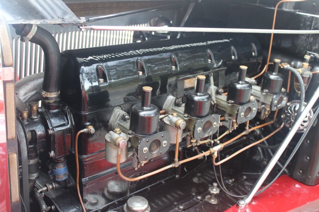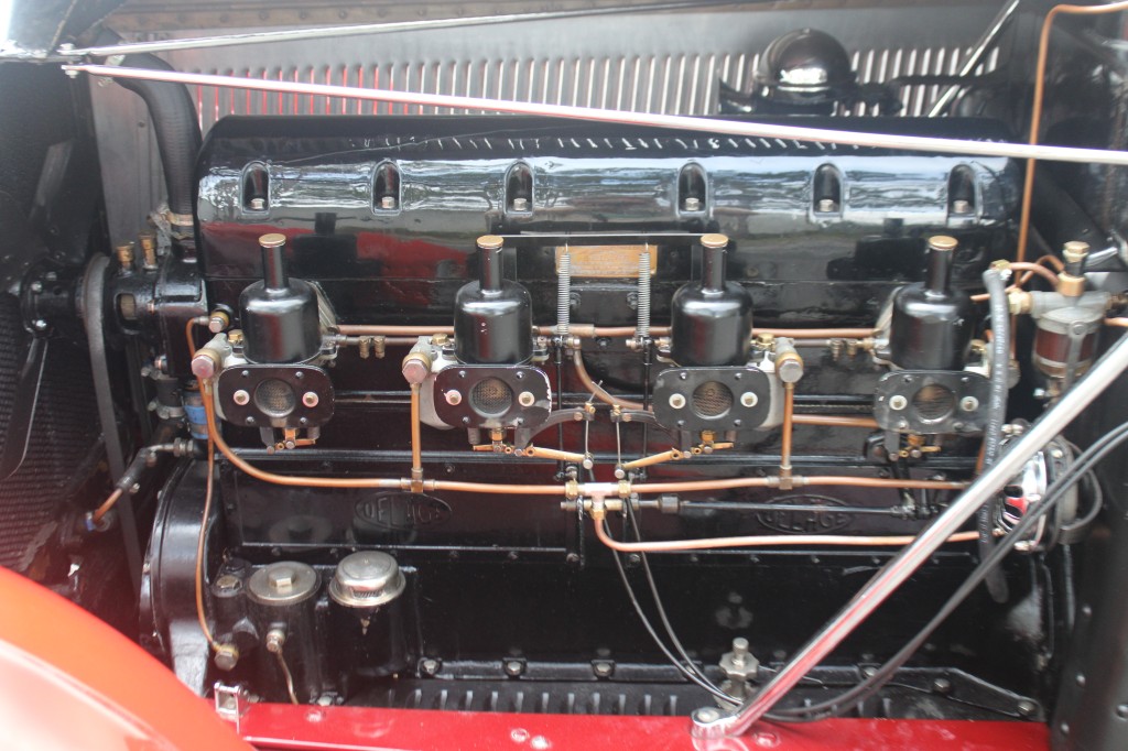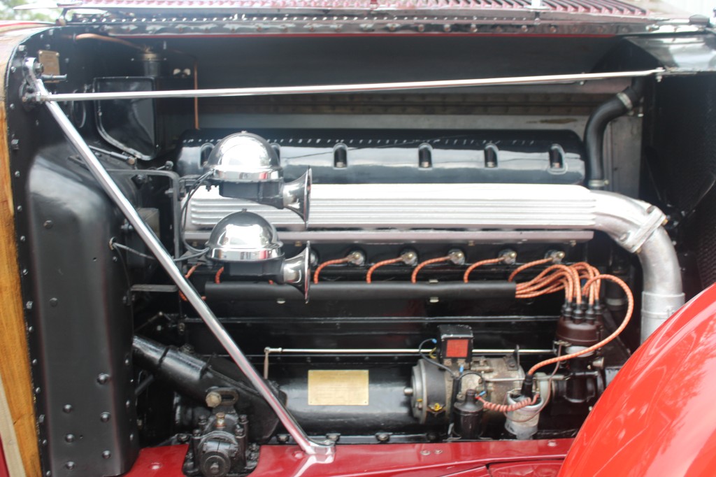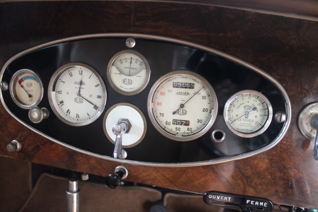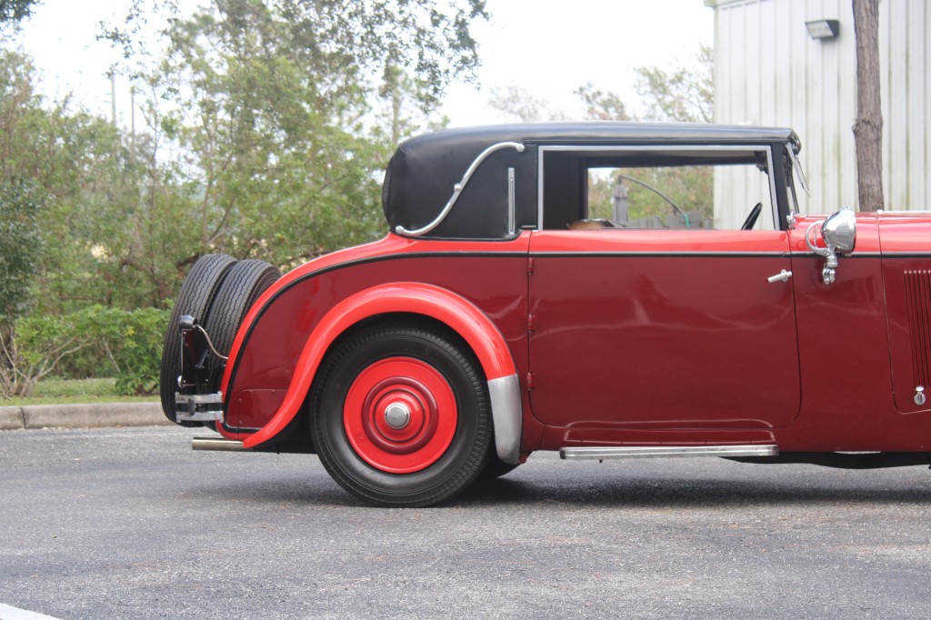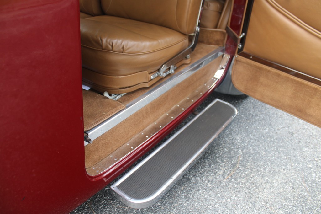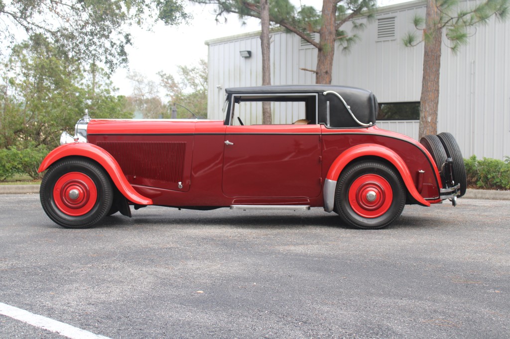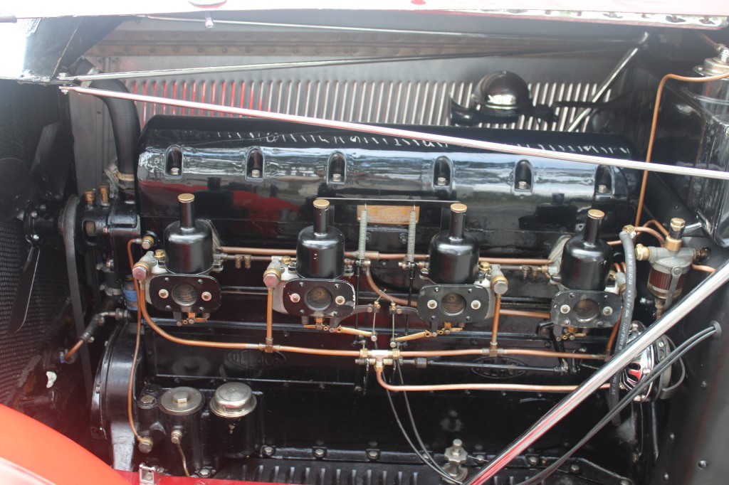 This two-door four seater faux cabriolet was constructed by Vanvooren using the patented Silentbloc vibration-isolating mounting system. The body is steel apart from the bonnet, which is aluminum. The four SU carburetors hint at its British market origins, and the mighty straight-eight engine sends its 120 horsepower to the ground via a four-speed gearbox. Dewandre servo-assisted hydraulic drum brakes provide ample stopping power. Other notable features of this particular car include twin rear-mounted mudguards, and short steps rather than a full-length running board.