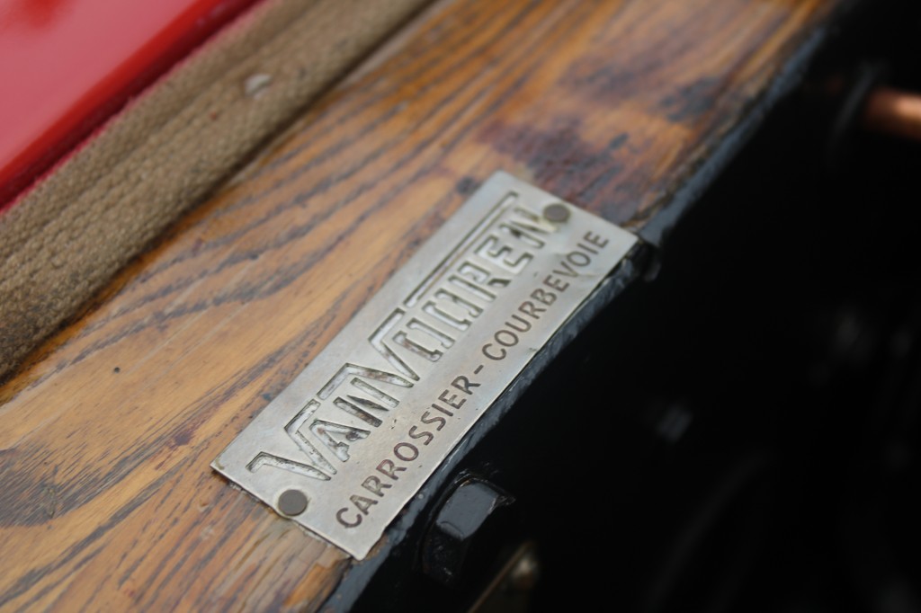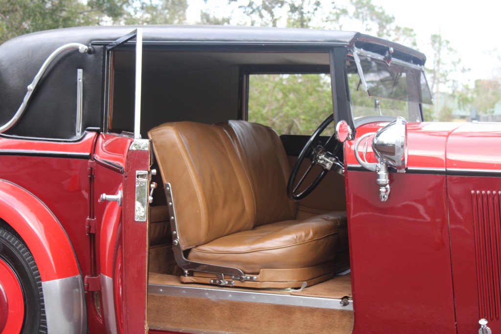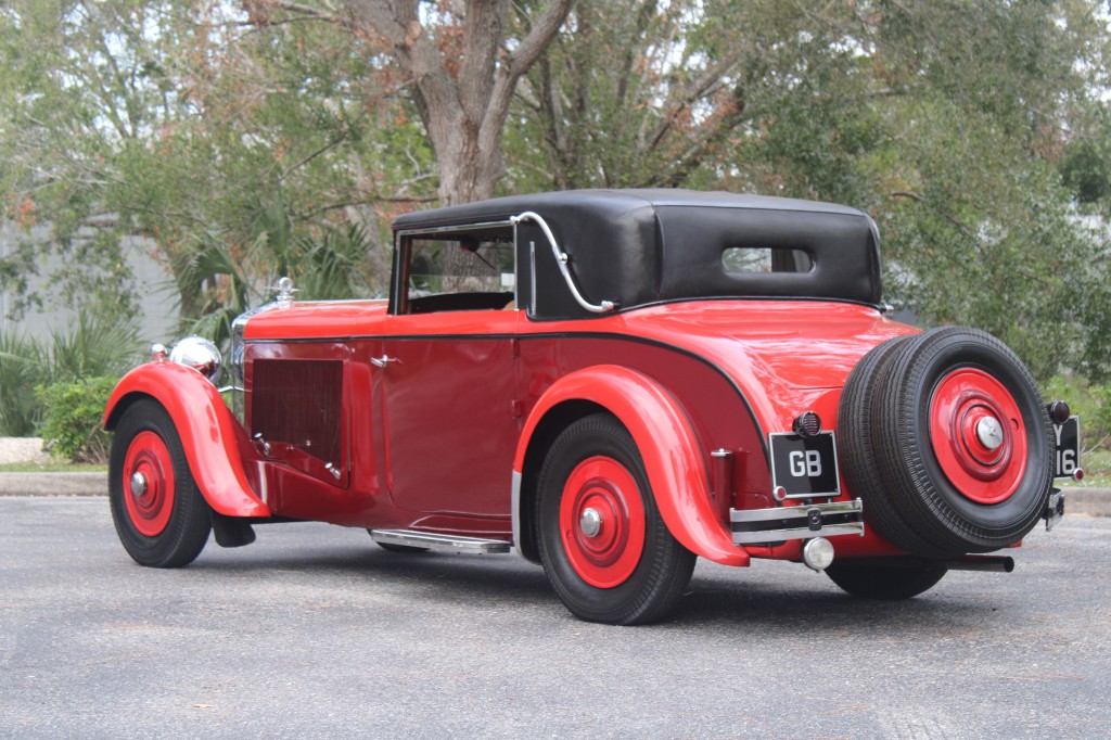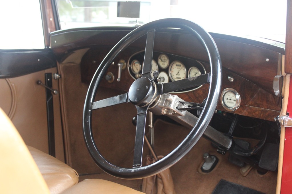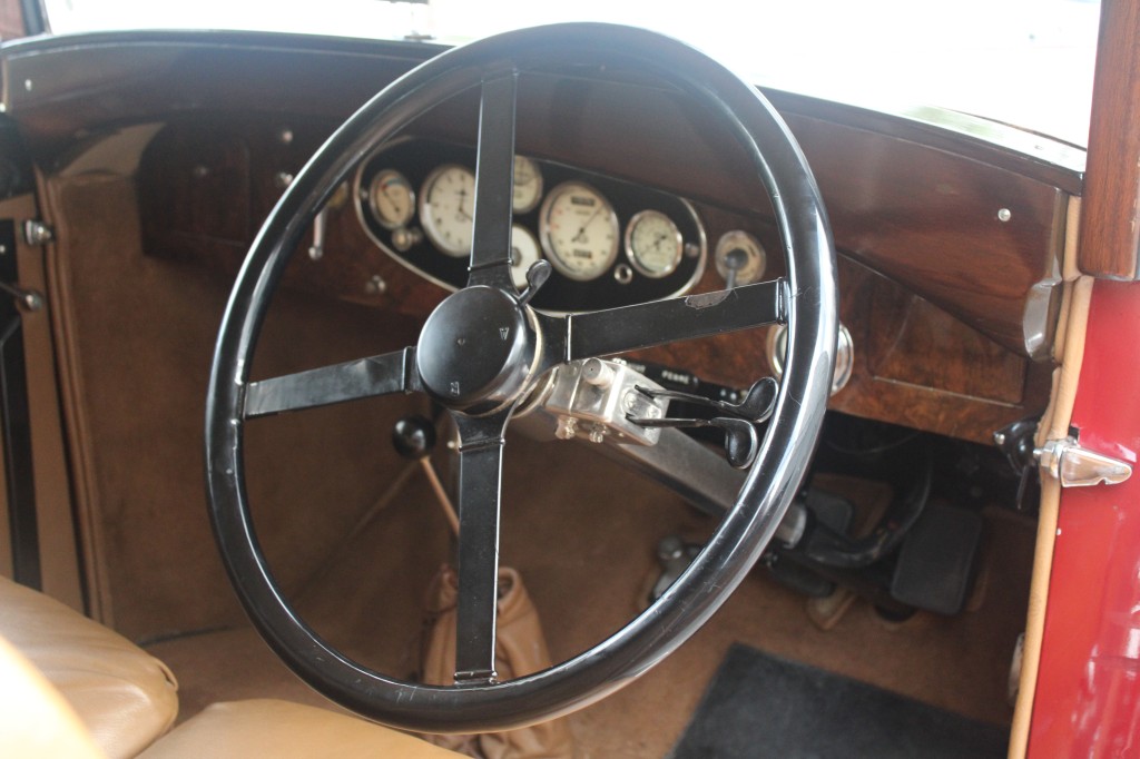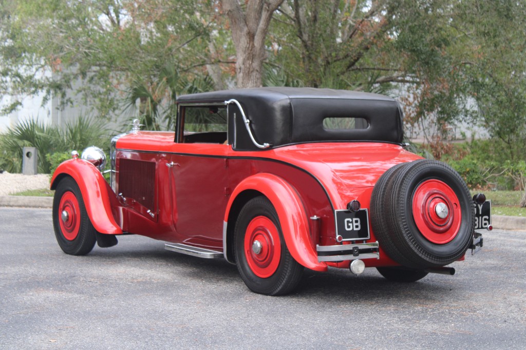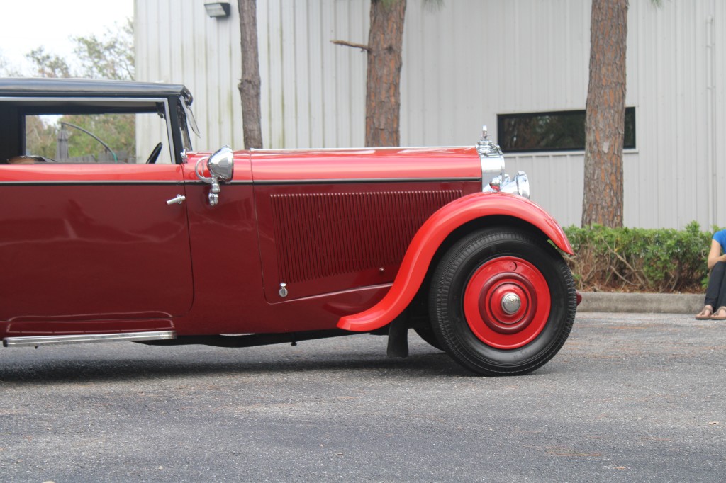 This two-door four seater faux cabriolet was constructed by Vanvooren using the patented Silentbloc vibration-isolating mounting system. The body is steel apart from the bonnet, which is aluminum. The four SU carburetors hint at its British market origins, and the mighty straight-eight engine sends its 120 horsepower to the ground via a four-speed gearbox. Dewandre servo-assisted hydraulic drum brakes provide ample stopping power. Other notable features of this particular car include twin rear-mounted mudguards, and short steps rather than a full-length running board.