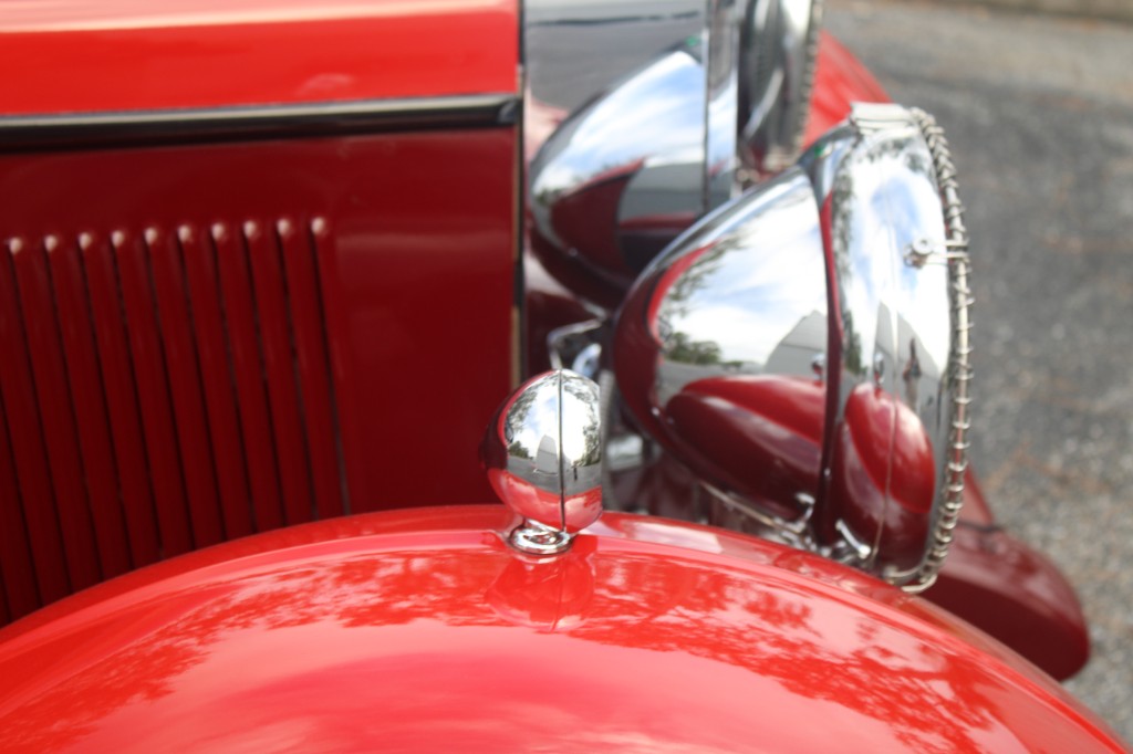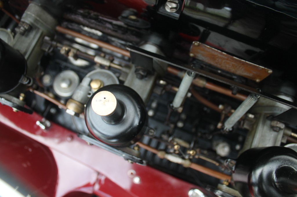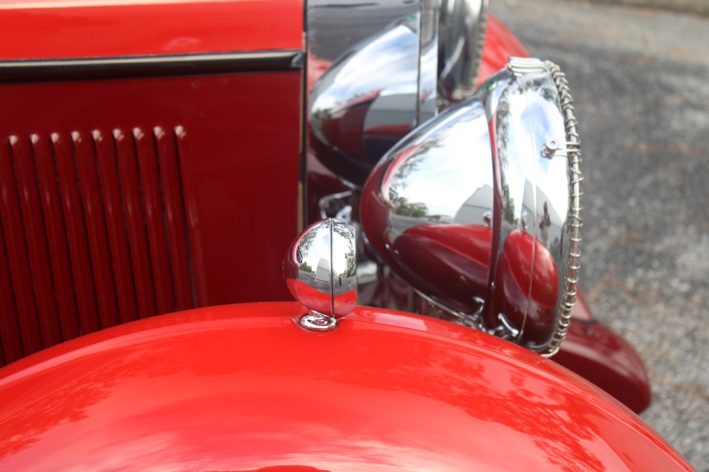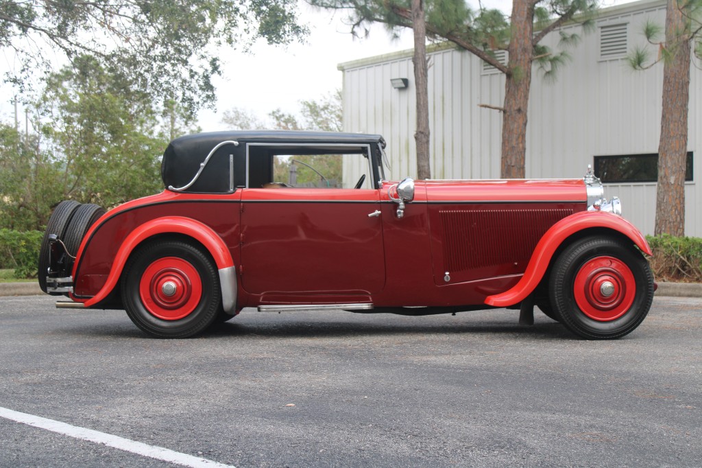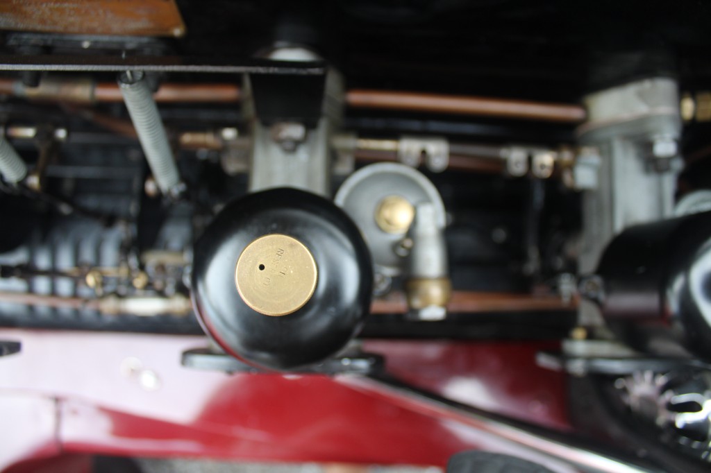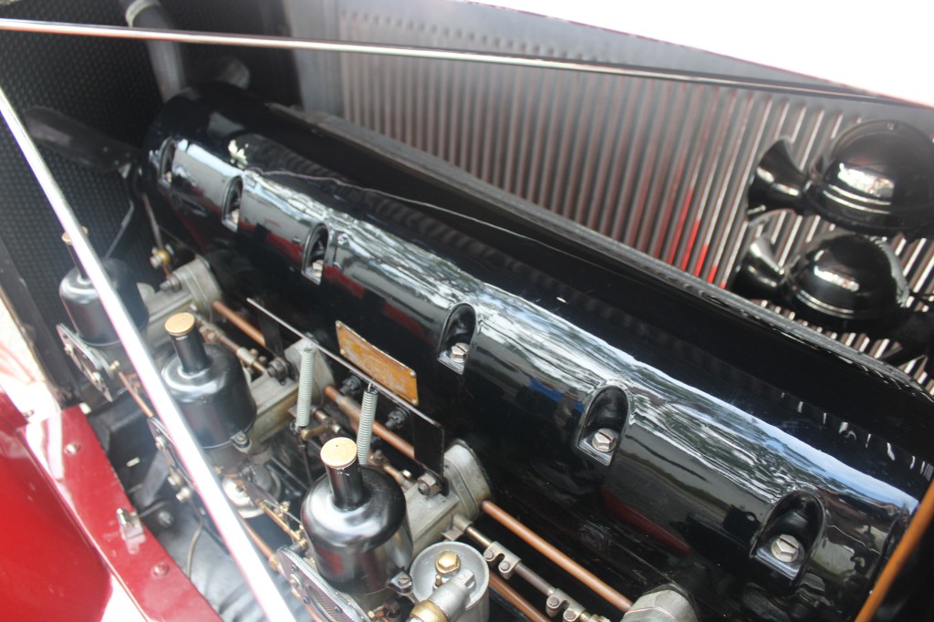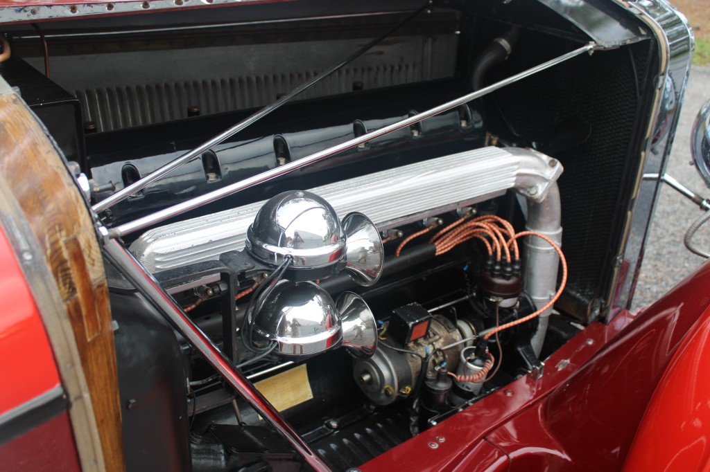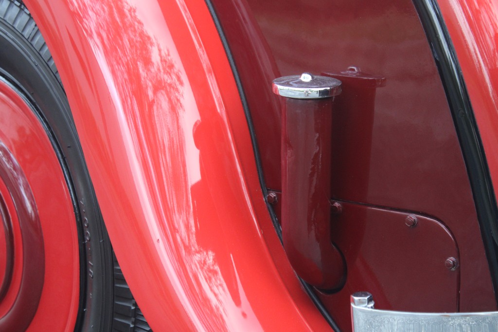This two-door four seater faux cabriolet was constructed by Vanvooren using the patented Silentbloc vibration-isolating mounting system. The body is steel apart from the bonnet, which is aluminum. The four SU carburetors hint at its British market origins, and the mighty straight-eight engine sends its 120 horsepower to the ground via a four-speed gearbox. Dewandre servo-assisted hydraulic drum brakes provide ample stopping power. Other notable features of this particular car include twin rear-mounted mudguards, and short steps rather than a full-length running board.