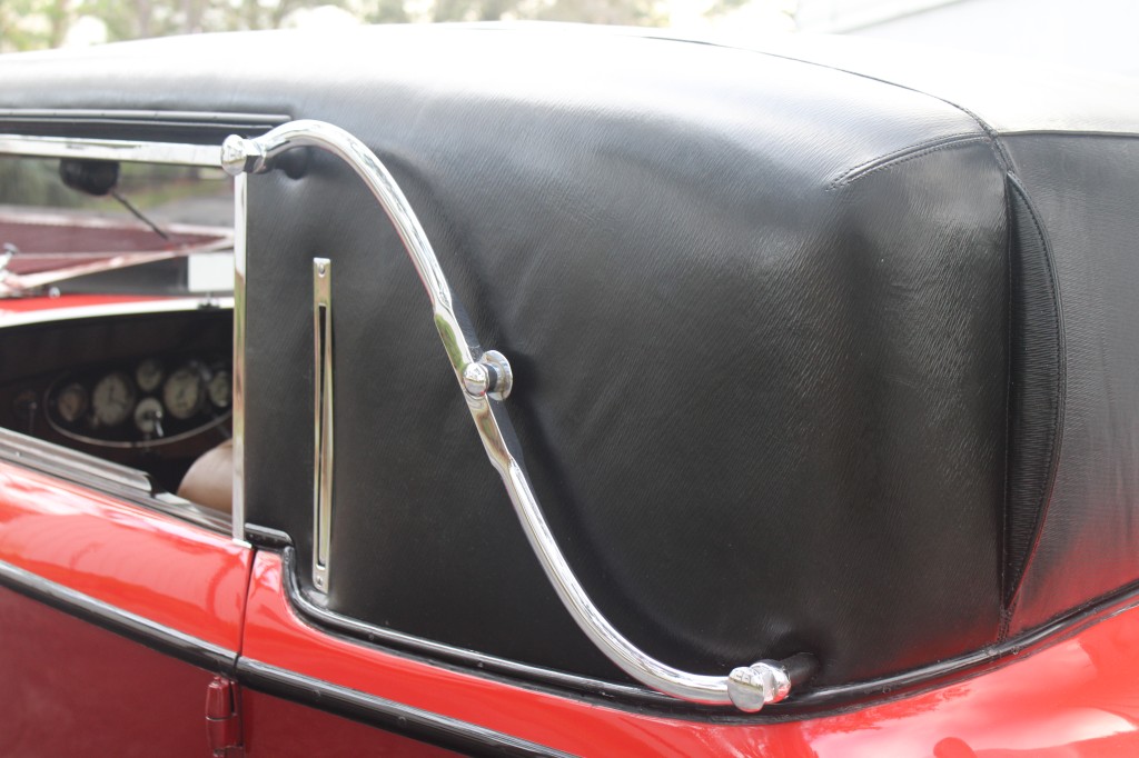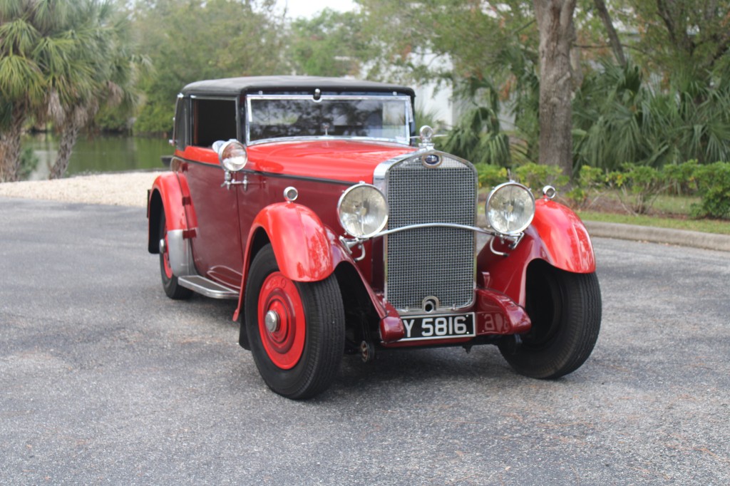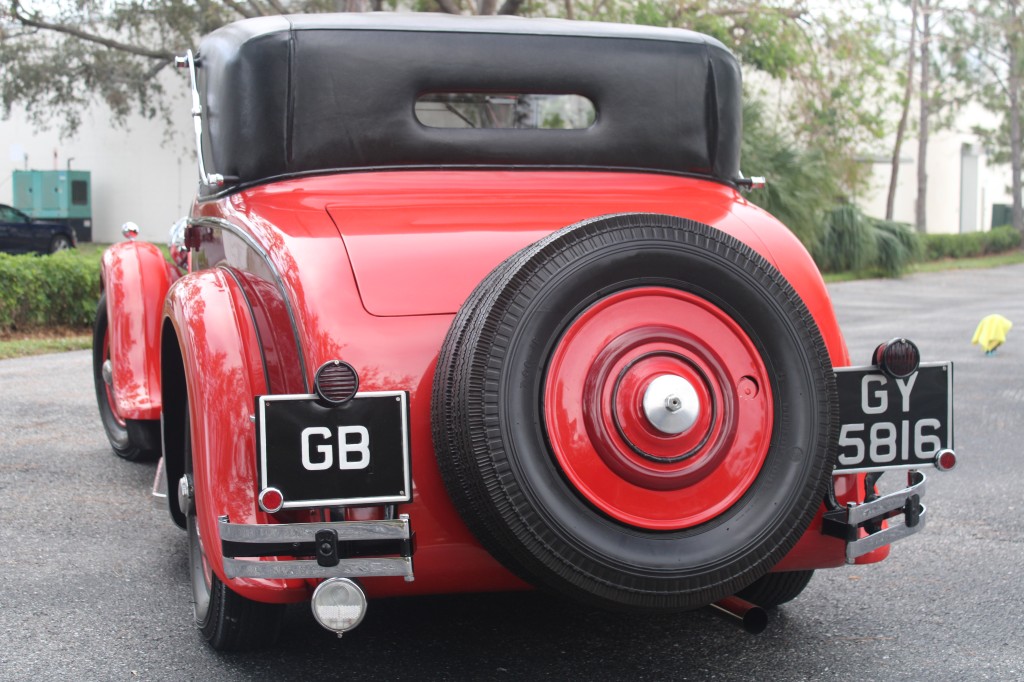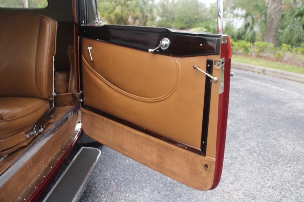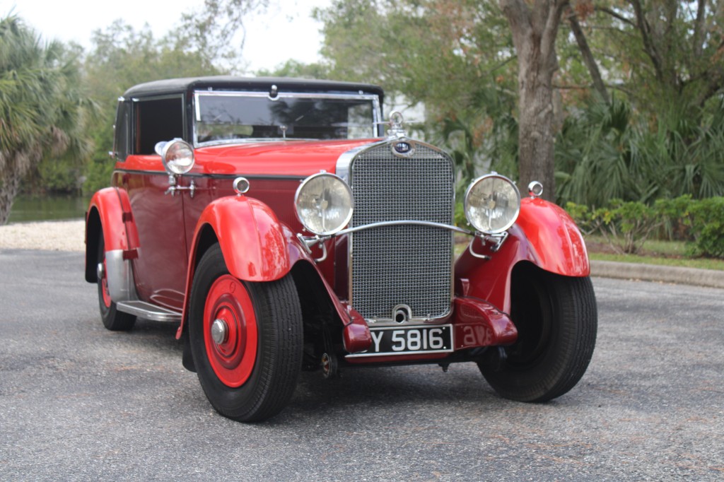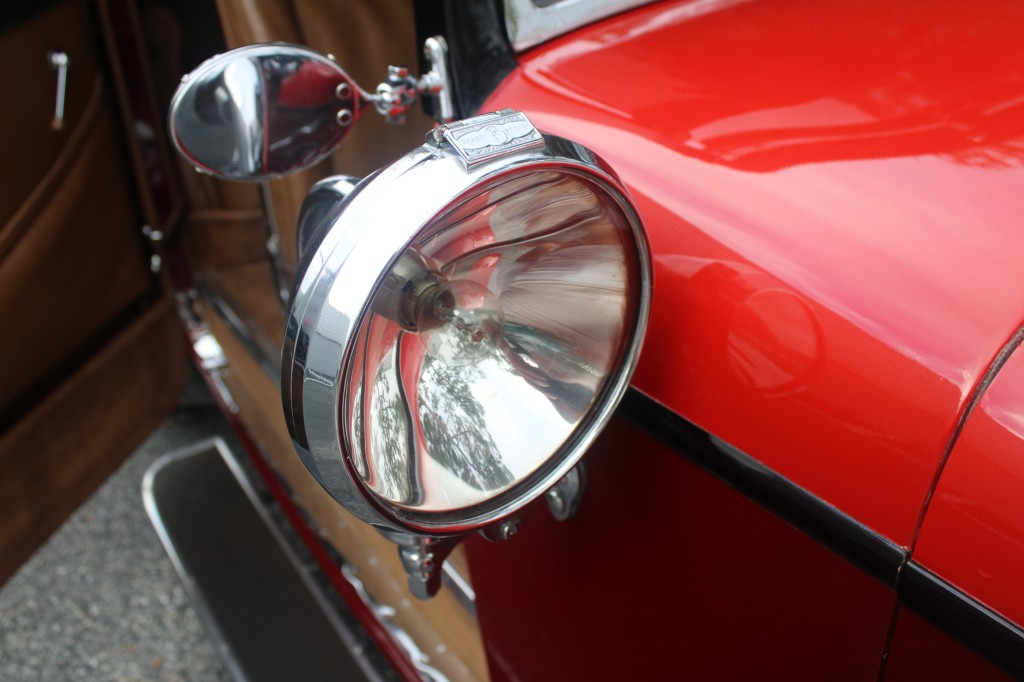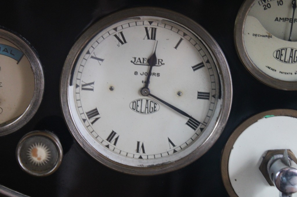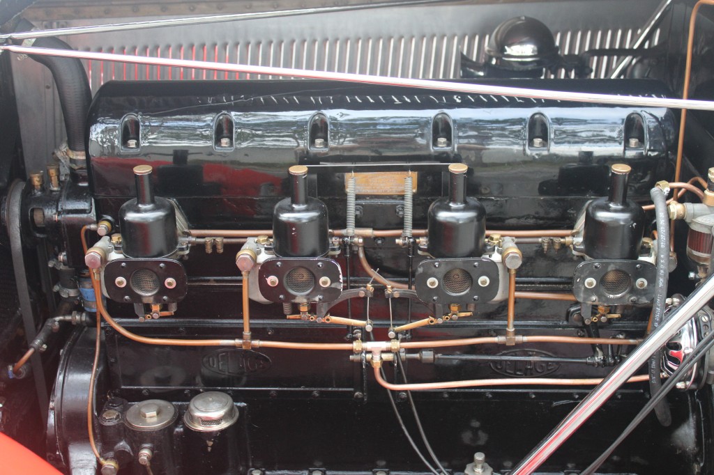 This two-door four seater faux cabriolet was constructed by Vanvooren using the patented Silentbloc vibration-isolating mounting system. The body is steel apart from the bonnet, which is aluminum. The four SU carburetors hint at its British market origins, and the mighty straight-eight engine sends its 120 horsepower to the ground via a four-speed gearbox. Dewandre servo-assisted hydraulic drum brakes provide ample stopping power. Other notable features of this particular car include twin rear-mounted mudguards, and short steps rather than a full-length running board.