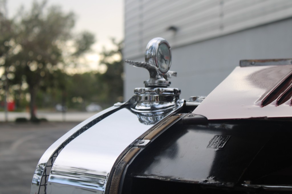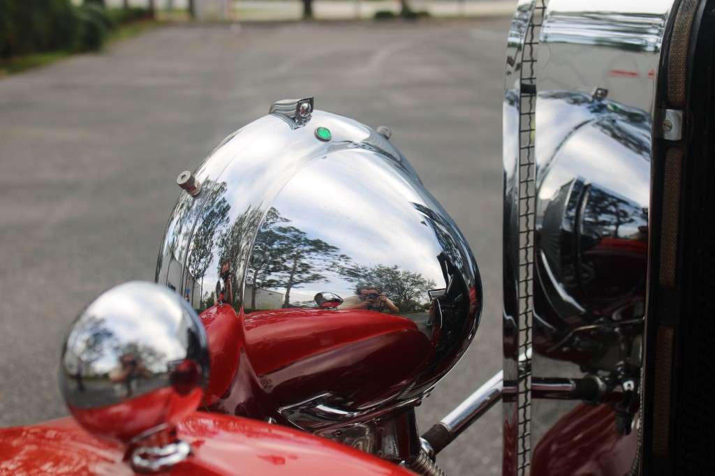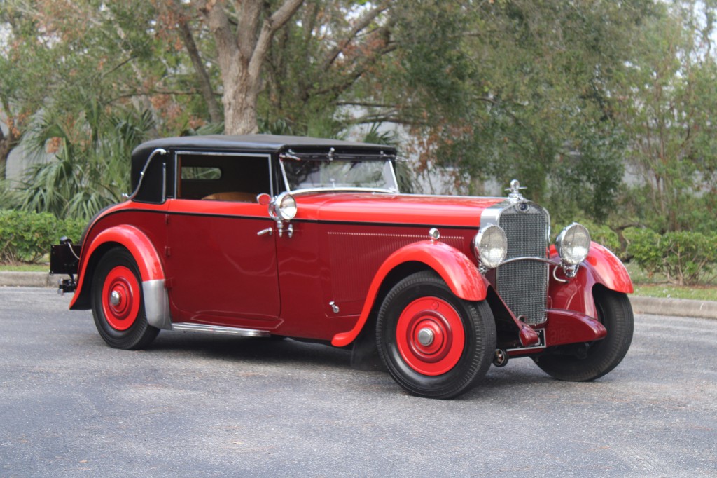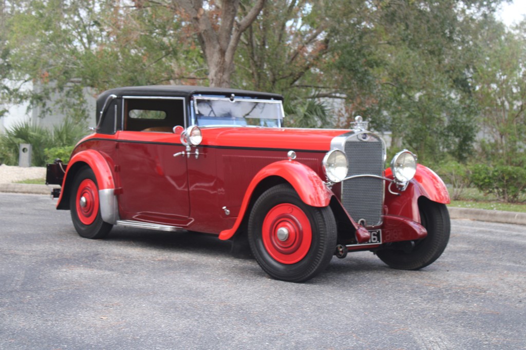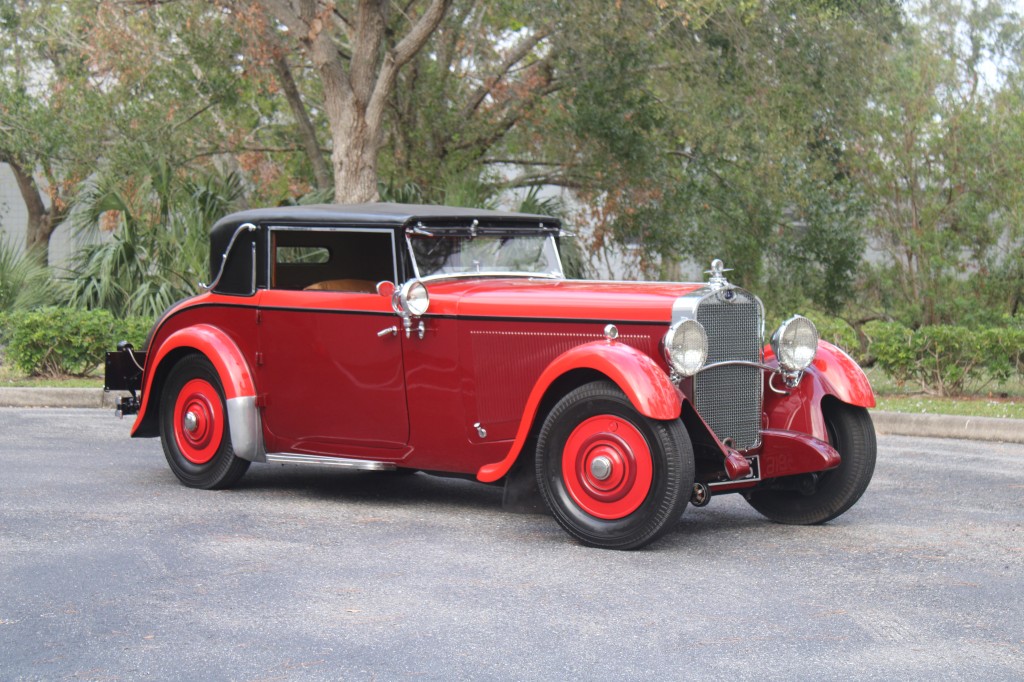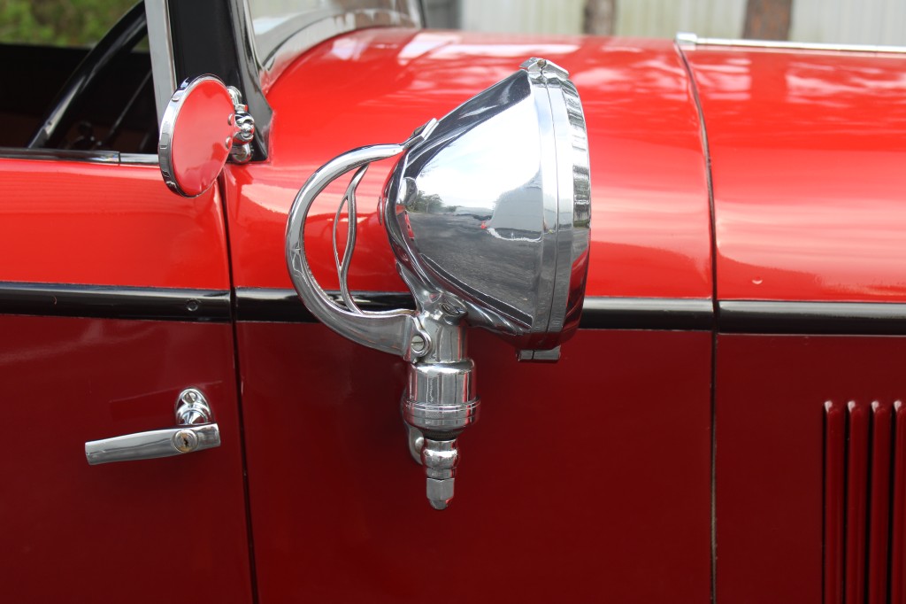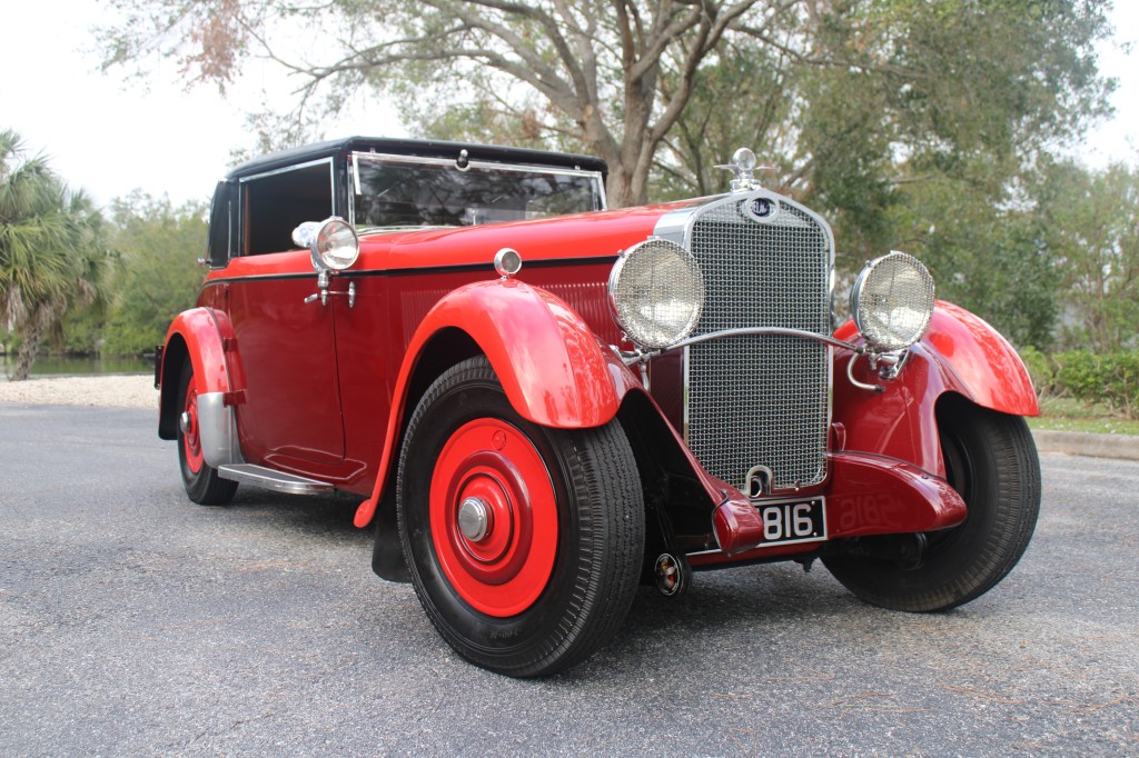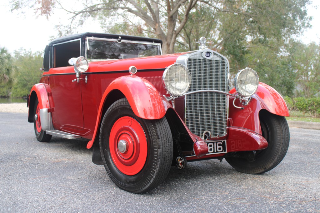This two-door four seater faux cabriolet was constructed by Vanvooren using the patented Silentbloc vibration-isolating mounting system. The body is steel apart from the bonnet, which is aluminum. The four SU carburetors hint at its British market origins, and the mighty straight-eight engine sends its 120 horsepower to the ground via a four-speed gearbox. Dewandre servo-assisted hydraulic drum brakes provide ample stopping power. Other notable features of this particular car include twin rear-mounted mudguards, and short steps rather than a full-length running board.