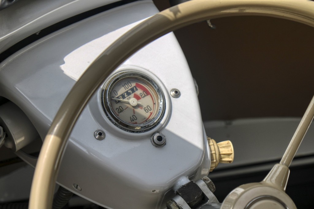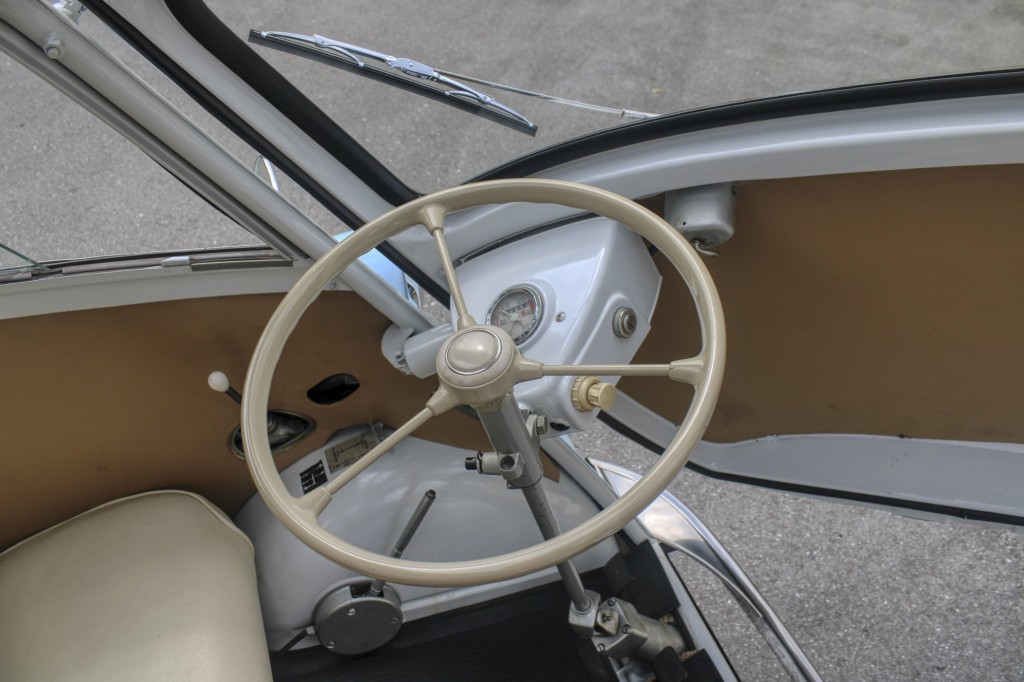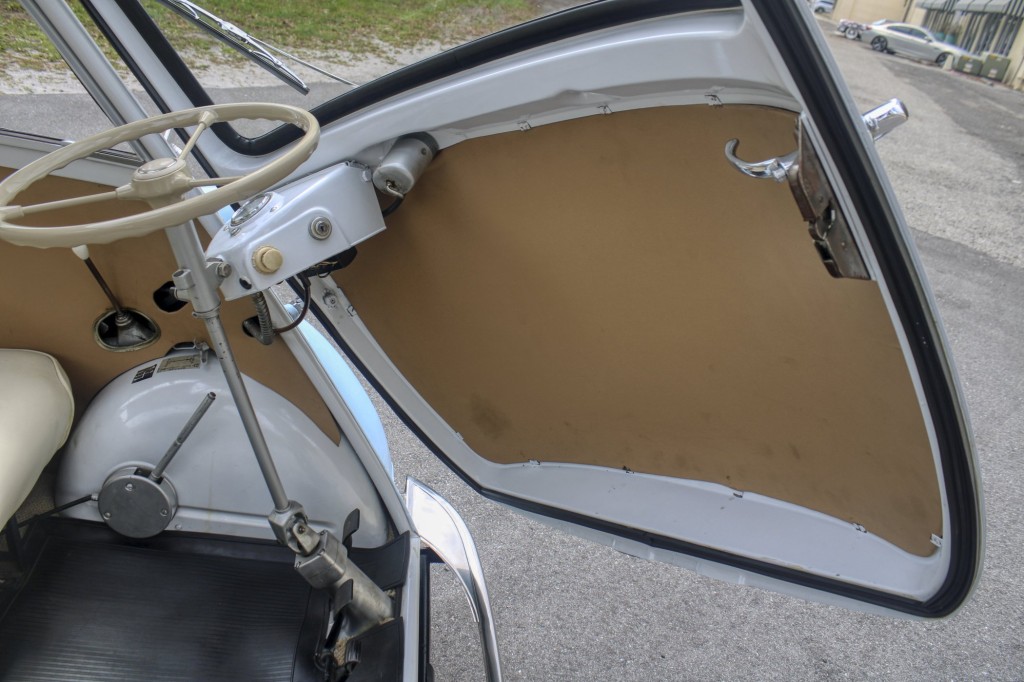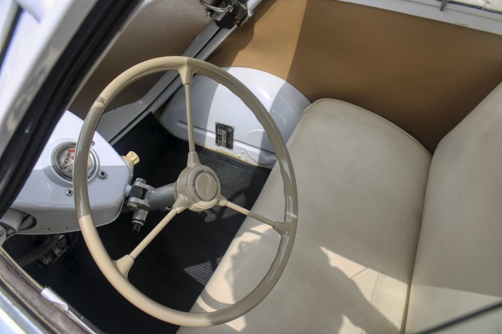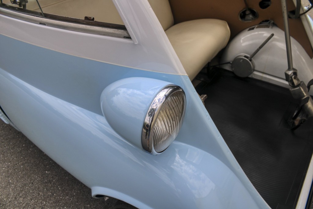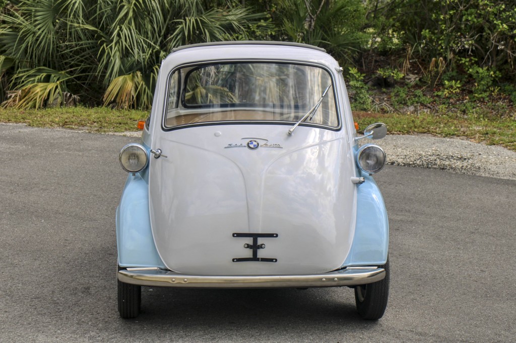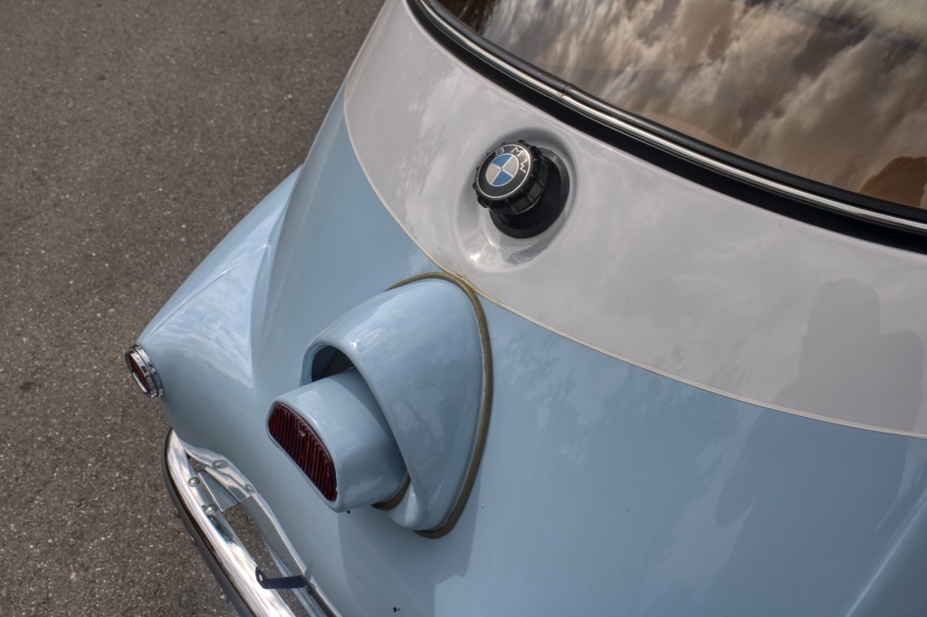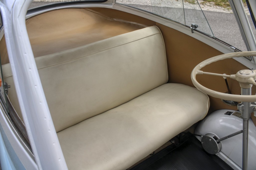 Two-Tone Sky Blue and White Exterior over Brown Interior